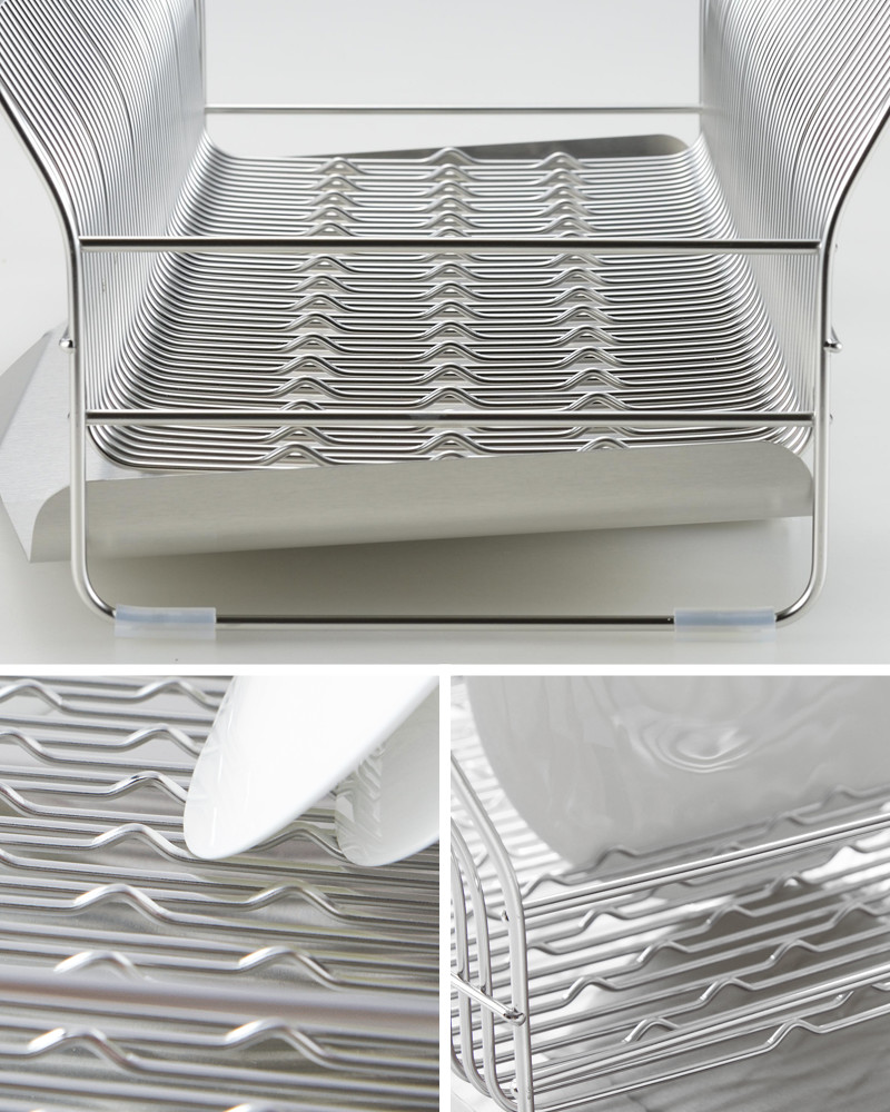 独自の「たてよこウェーブ」構造により、お皿を縦にも横にも安定して立てられます。底部の波状ワイヤーがお椀や大皿もしっかり支え、すべり落ちを防止。考えなくてもスムーズに片付けができ、キッチンをすっきり整えられます。