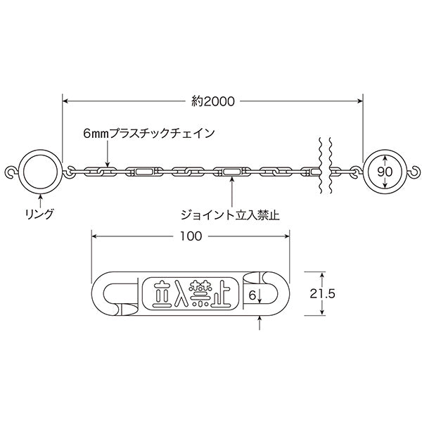 | 備考 | リング2個・ジョイント4個・高輝度蓄光チェイン5本(20分後輝度103mcd/平方メートル) ジョイント部:立入禁止 |