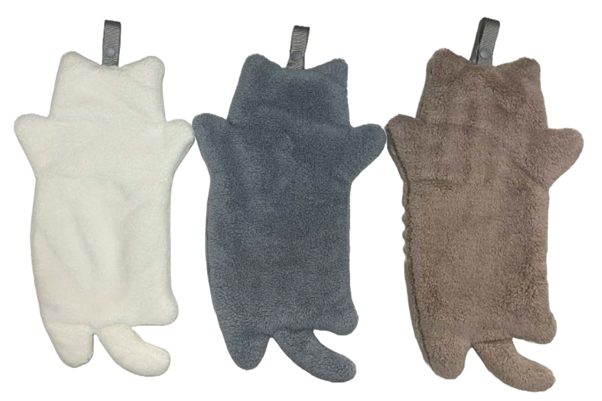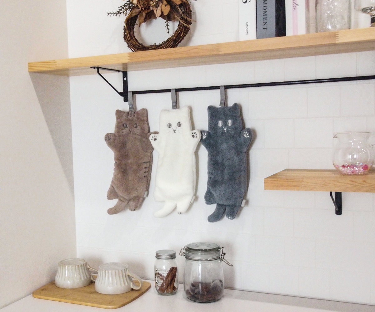 おすまし顔が大人かわいいループ付きネコ型タオルです。使うたびに癒されるネコのデザインと、優しい肌触りが魅力です。ネコ好きな方へのギフトにもピッタリです。