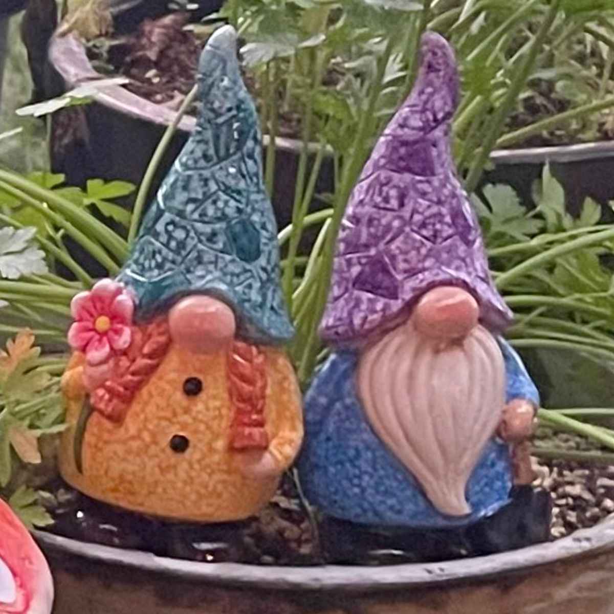 まるで絵本の世界から飛び出してきたような、愛らしいガーデンノームです。カラフルな配色が目に楽しく、置くだけで楽しい空間を演出します。