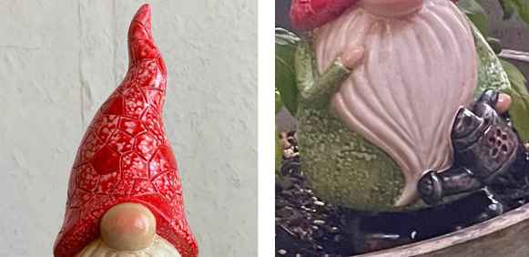 手にジョウロを持ったキュートな姿のガーデンノームです。今にも動き出して、水やりをお手伝いしてくれそうです。