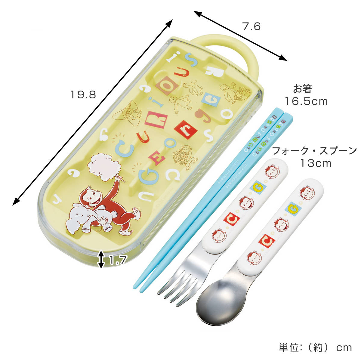 | サイズ | 約 幅19.8×奥行7.6×高さ1.7(cm) お箸:約 長さ16.5(cm) スプーン・フォーク:約 長さ13(cm) |