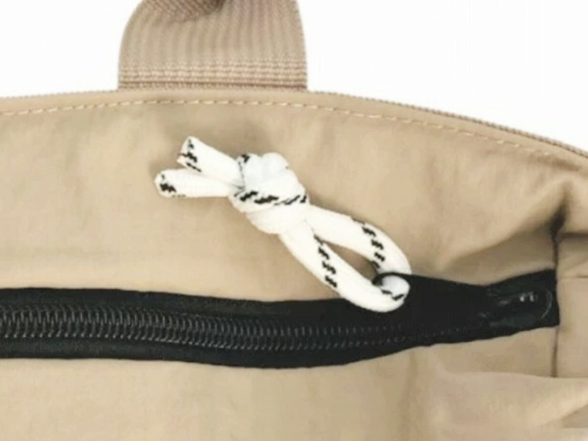 ファスナースライダーには、モノクロカラーのひも付きで開閉しやすく、見た目もスタイリッシュです。入れやすいトートタイプながら、中身が見えないので安心してお使いいただけます。
