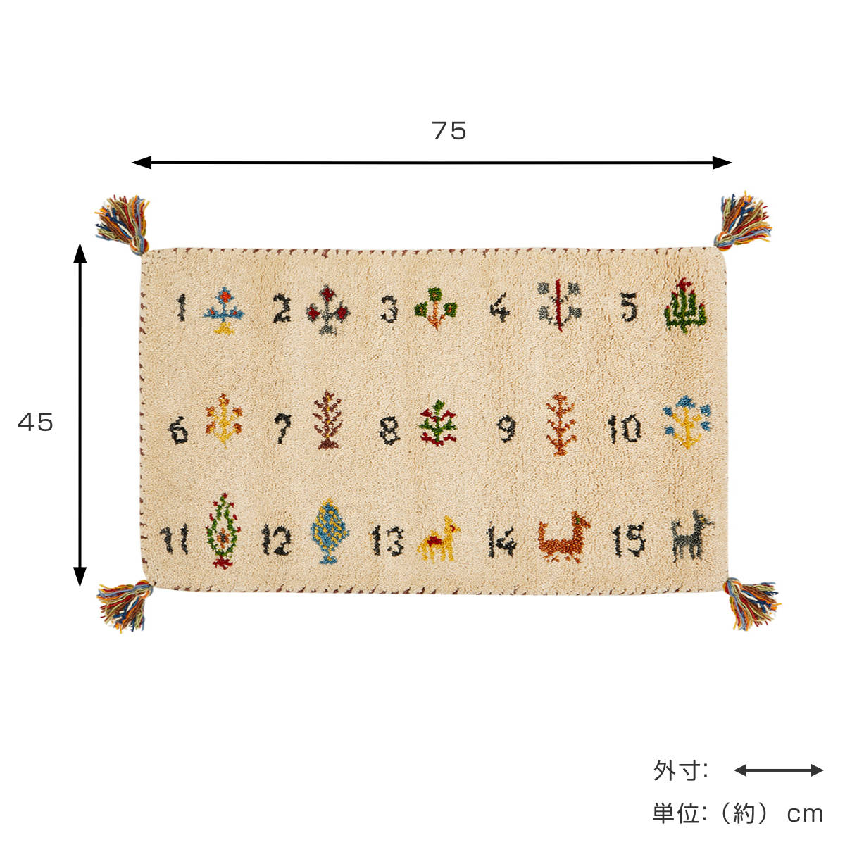 玄関マット 室内 GABBEH ヌメロ 45×75