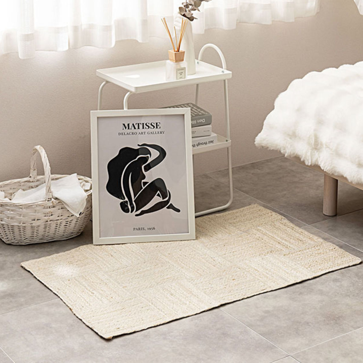 ジュート素材を活かした温かみのあるデザインはインテリアのアクセントになります。リビングの入口、窓際、椅子の足元など、さまざまな場所にお使いいただけます。