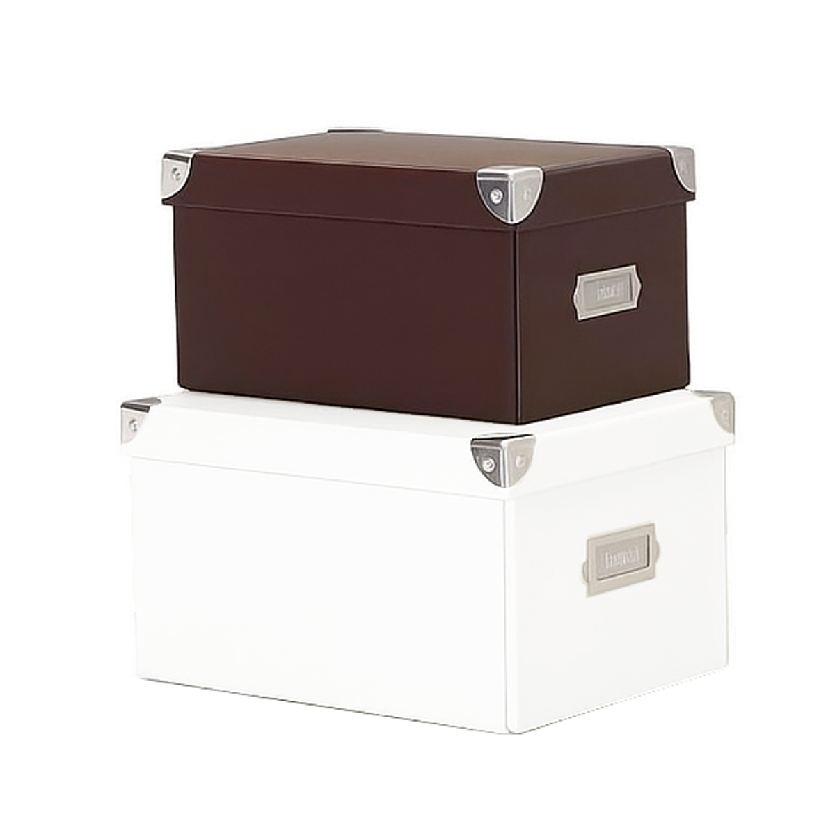 落ち着いたカラーがおしゃれなフタ付きの紙製ボックスは、デザイン性に優れているので、棚に並べてもお部屋に並べても、インテリアに自然になじみます。見せたくない物、まとめておきたい物を全部入れて、お部屋をスッキリさせましょう。
