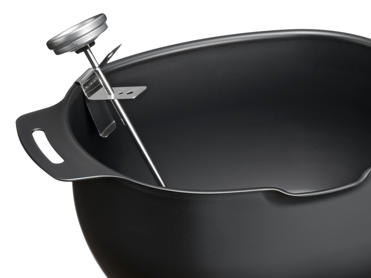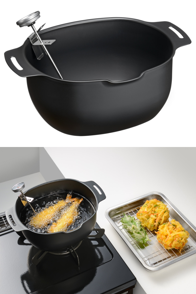 温度計が付いているので温度管理がしやすく、揚げ物に最適な温度を一定に保てます。