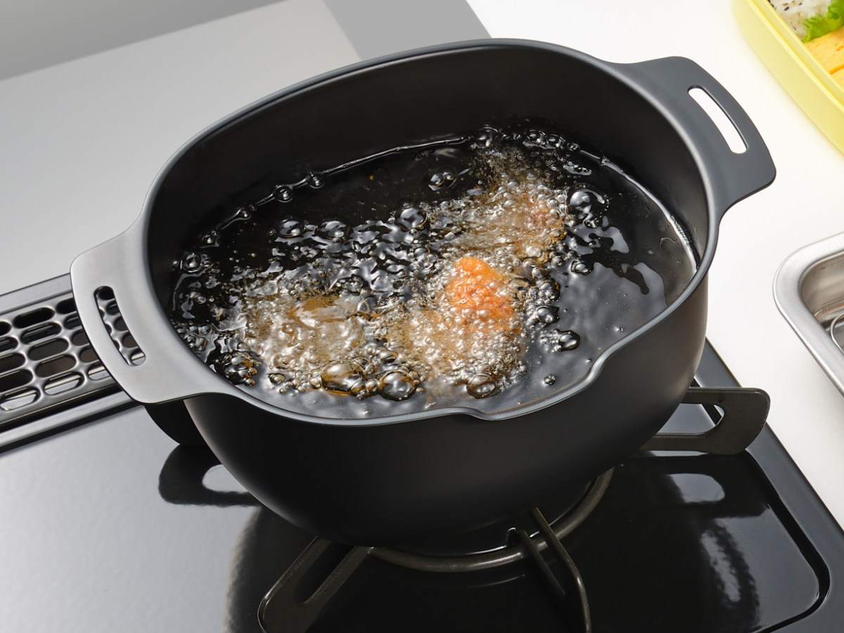 鉄は耐熱性に優れ、熱伝導率・保温性が高く、高温状態をキープするため、揚げ物がカラッとおいしく仕上がります。