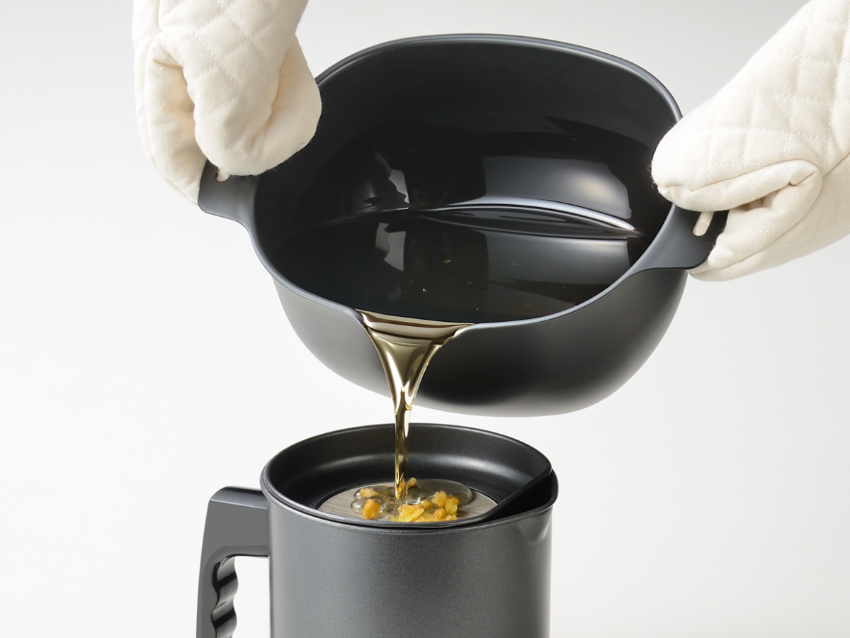 オイルポットに油を移し替える際に便利な注ぎ口付きです。