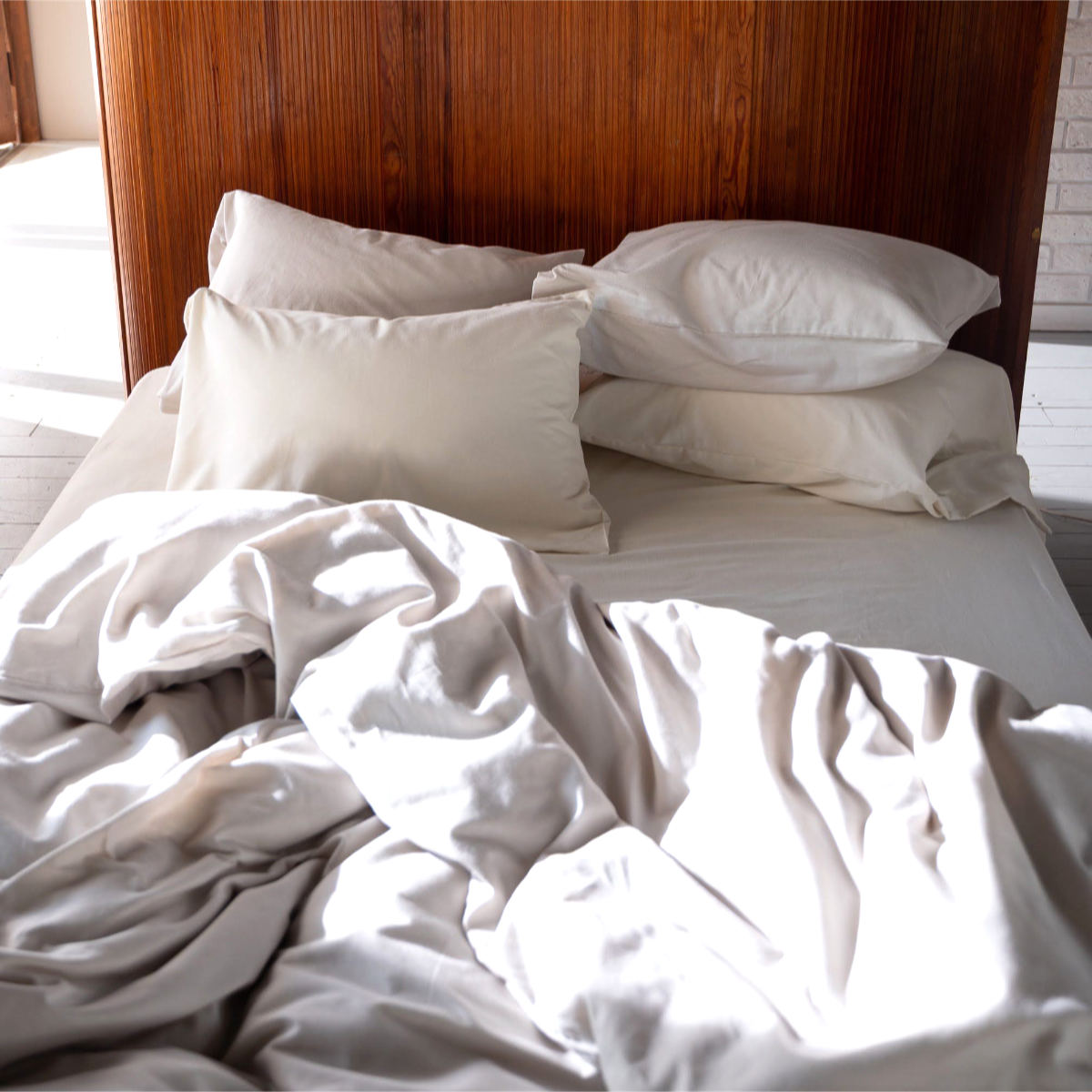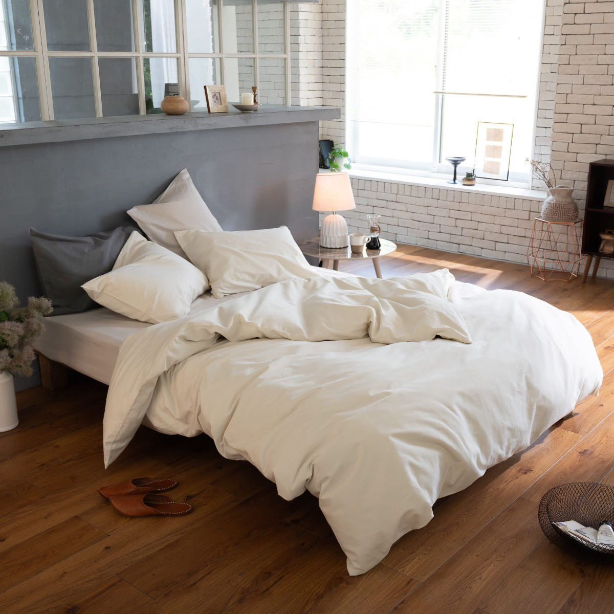 天然素材コットン100%の糸を、ツイルに織り上げほんのり微起毛に仕上げたボックスシーツです。適度にハリを残し、肌に触れる毛が心地よいと感じるくらいの繊細でなめらかな起毛具合です。思わず顔をうずめたくなるような、やさしく包み込まれる心地よい肌ざわりです。