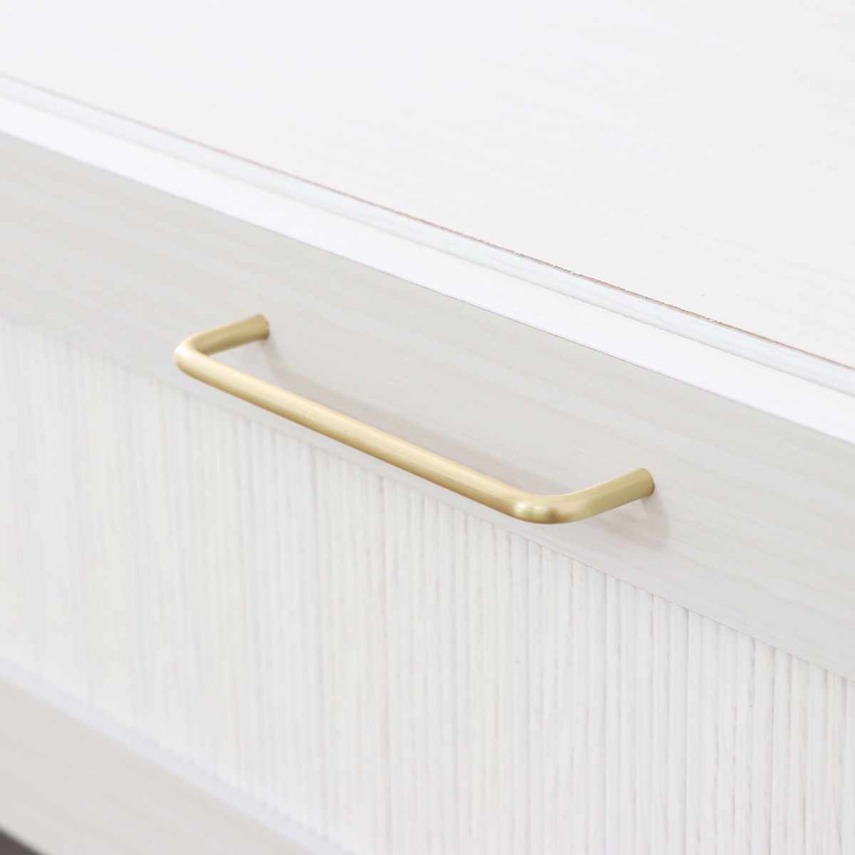 本体は爽やかなホワイトで、真鍮の取っ手がさりげないアクセントに。シンプルで上品なデザインが、リビングの雰囲気を明るく整えてくれます。