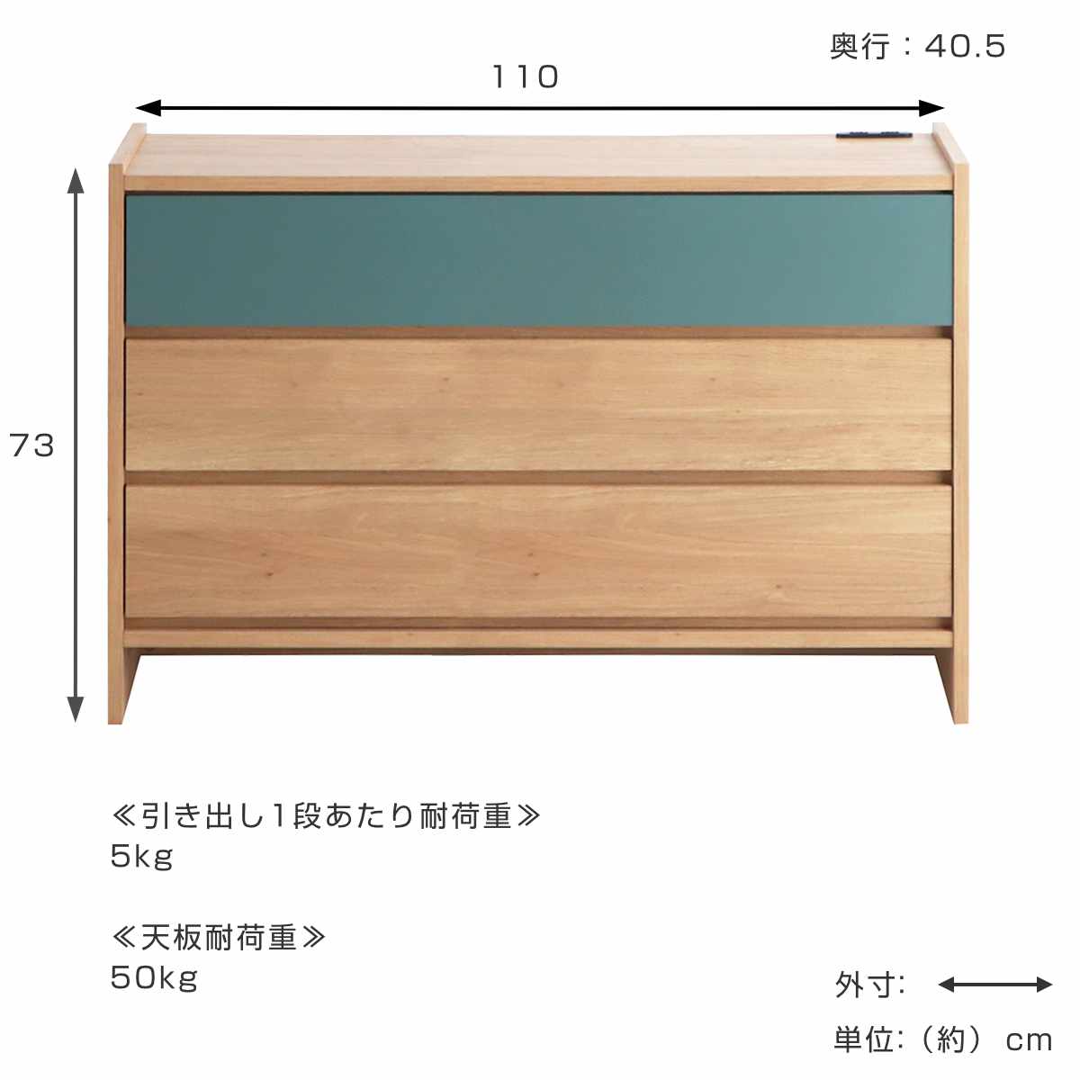 | 引き出し1段あたり耐荷重 | 5kg |
