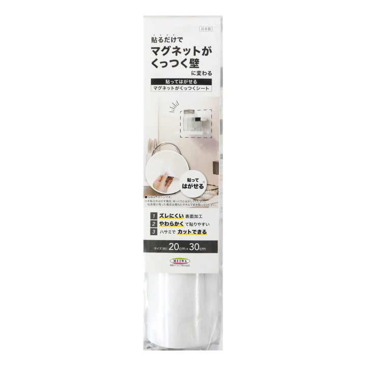 貼るだけでマグネットがくっつく壁に変わるシートです。リビングやダイニング、デスク周りや子供部屋など様々な場所で便利なマグネット収納が叶います。