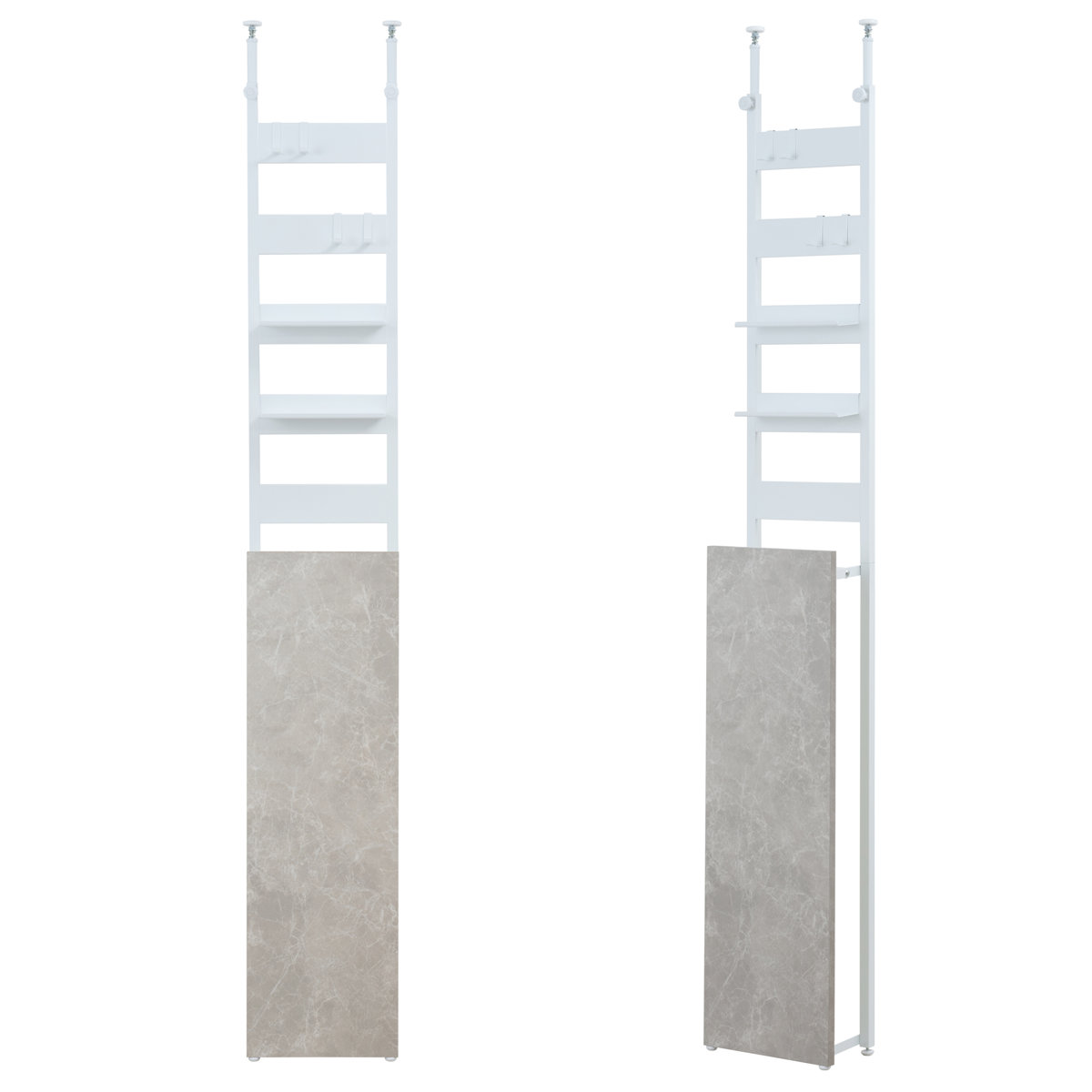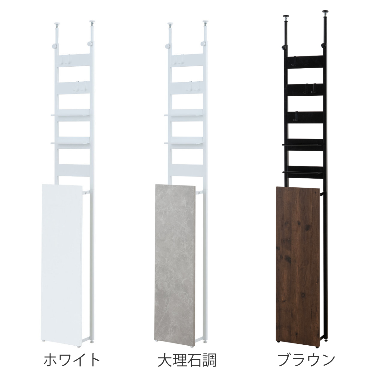 玄関で傘を収納しながら、必要なものをまとめておけるラダーラックです。天井や壁に穴を空けるなどの工事が不要なので、賃貸住宅にお住まいの方にもおすすめです。グレー系の大理石柄と木目のないさわやかなホワイトの2色展開です。