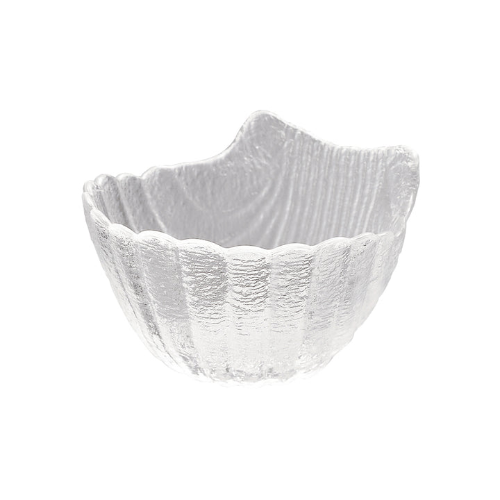 目にも涼しげな、貝をかたどったガラスの豆鉢です。クリアで爽やかな印象の器は冷たい前菜やソルべ、おつまみのナッツをいれるのにもぴったりです。大きなプレートの上に載せて立体的に演出するのもおすすめです。