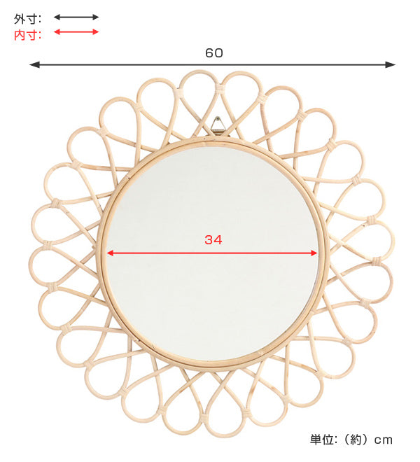 | 備考 | 完成品 ミラーサイズ:約直径34cm ※天然素材を使用しているため、大きさ、色味に若干の個体差がございます。 |