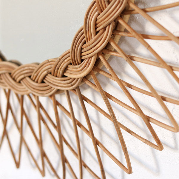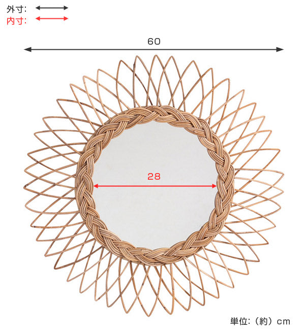 ウォールミラー 壁掛けミラー ラタン製フレーム 籐製フレーム