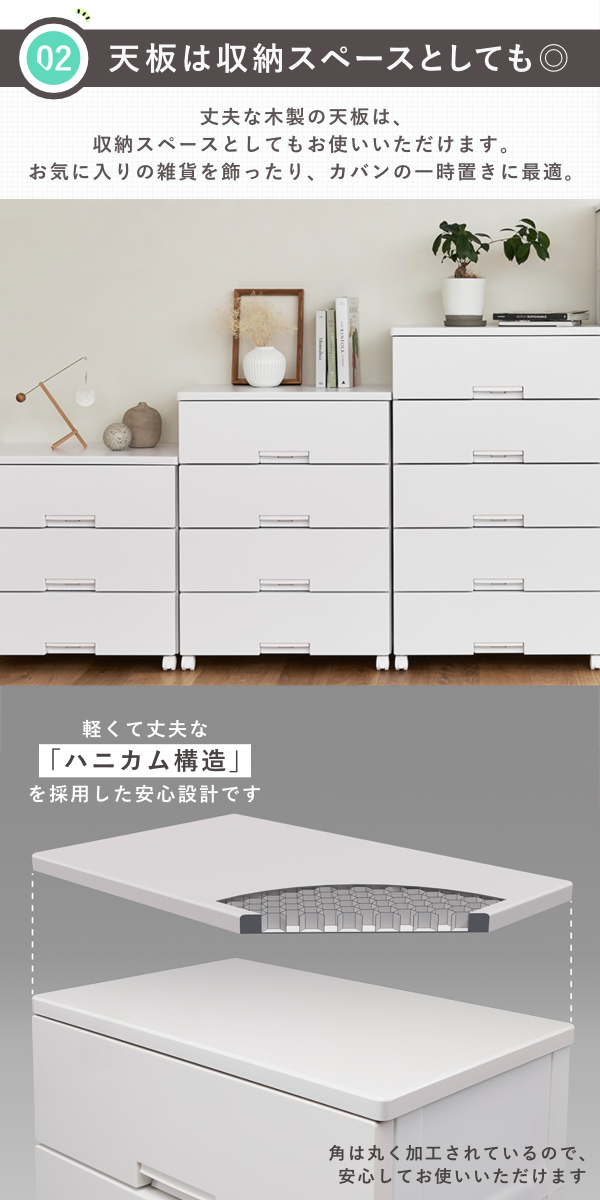 | 備考 | 収納目安:各引出しにトレーナーなら12枚、セーターなら7枚、Yシャツなら15枚 |