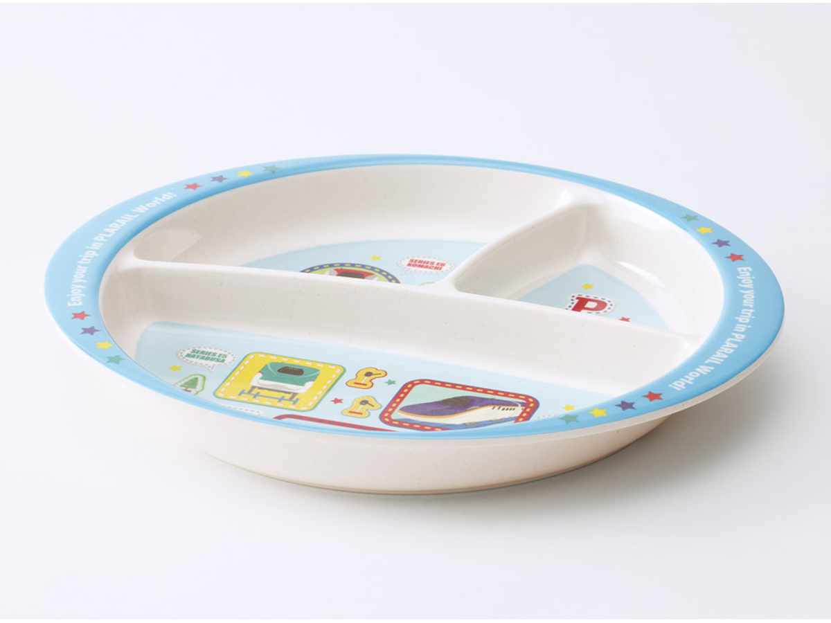 環境に優しいバンブーファイバー配合素材を使用したランチプレートです。環境への負担を抑えながらも、高級感のある質感をお楽しみいただけます。お気に入りのデザインのプレートと一緒に、お子様も楽しく食事ができます。