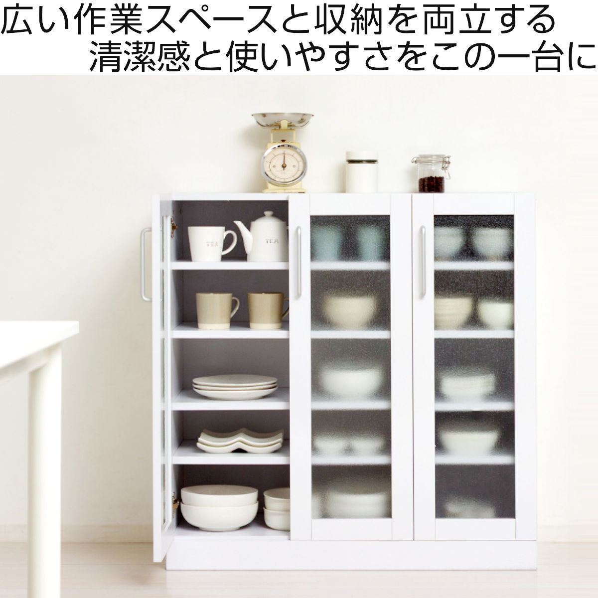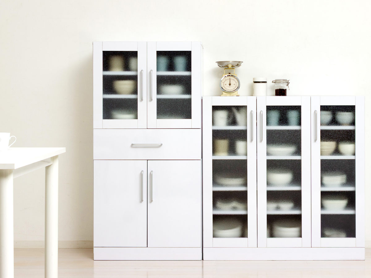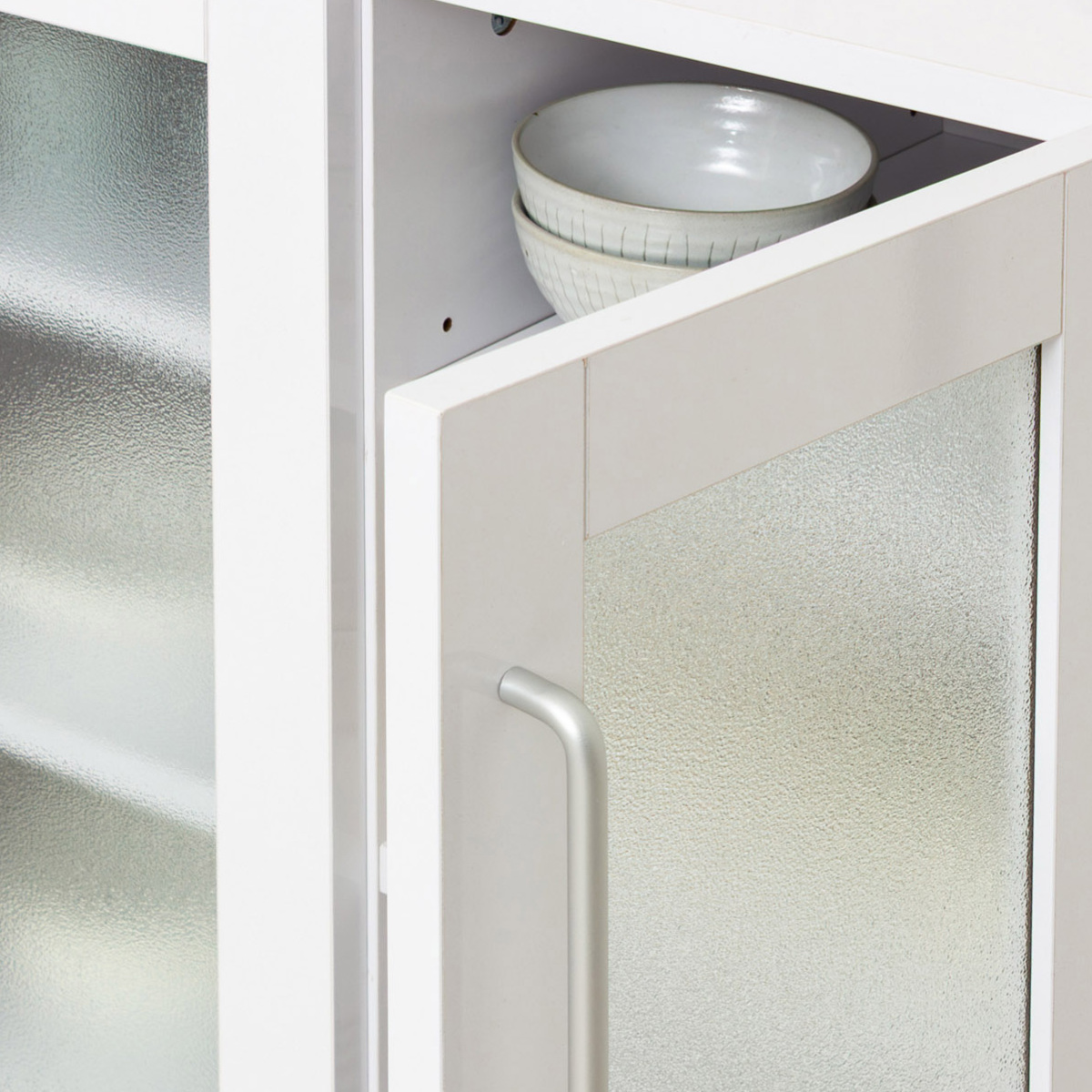 食器棚 幅89.5cm 高さ90cm メラミン すりガラス 背面化粧