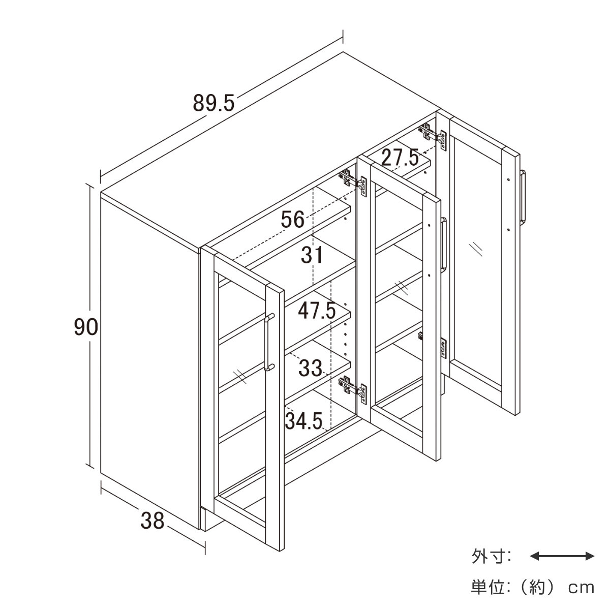 | サイズ | 約 幅89.5×奥行38×高さ90(cm) |