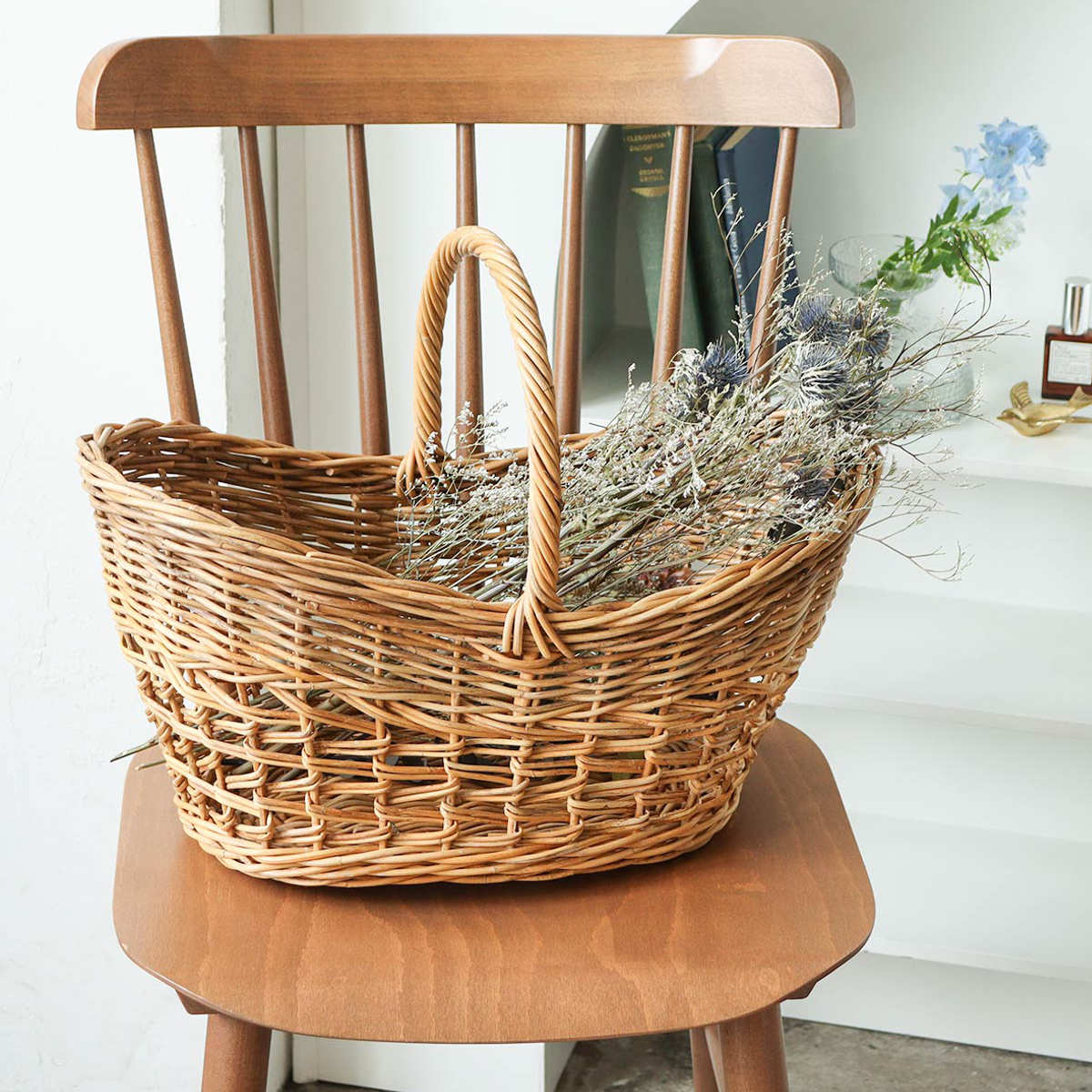 ●ドライフラワーやお気に入りの雑貨を飾るように入れて、インテリアバスケットとしてもお楽しみいただけます。