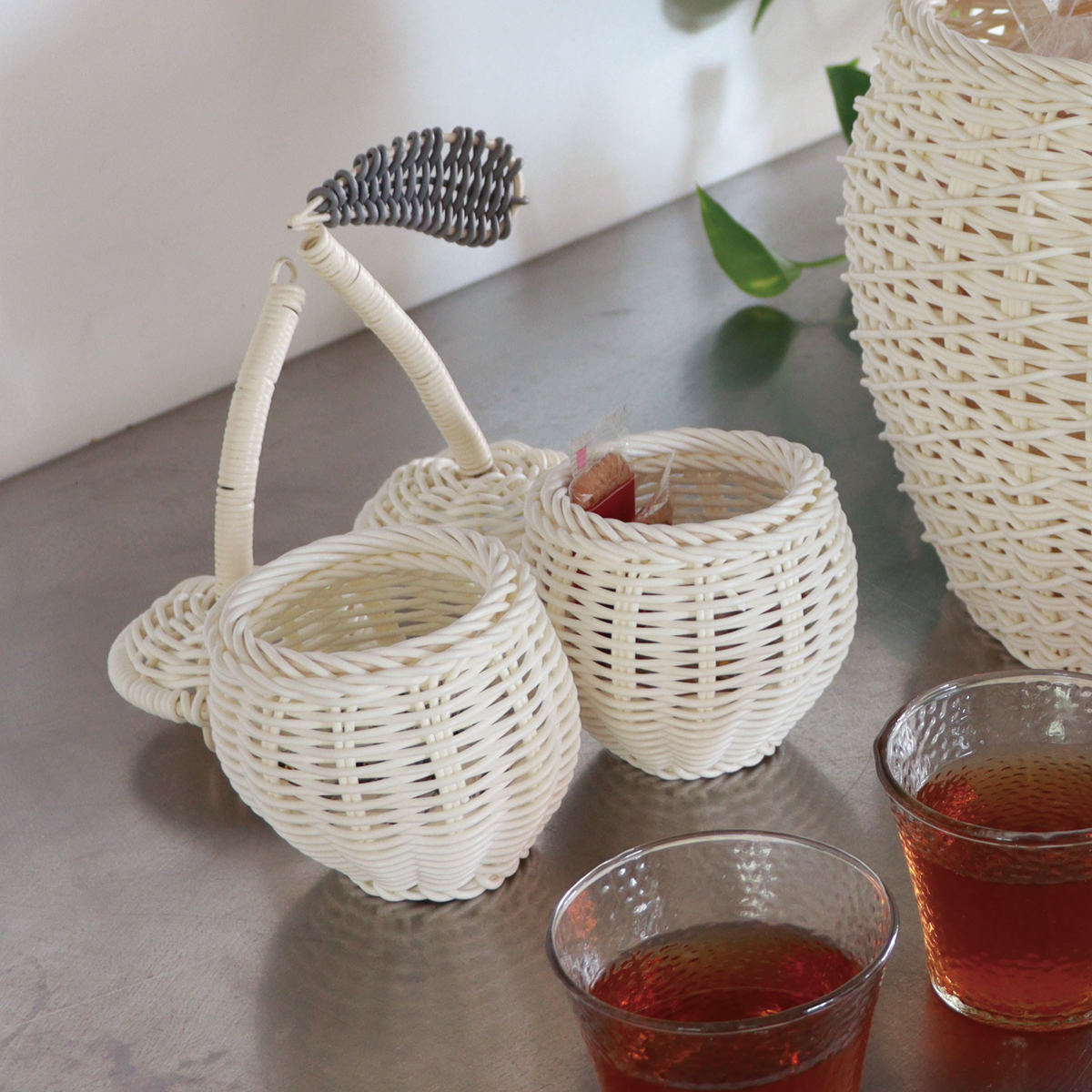 小ぶりなサイズが愛らしい、チェリー型のバスケットです。玄関では鍵やヘアゴム、USBやイヤホンなどの小物入れに、カフェコーナーでは紅茶のティーバッグやミルクポーション入れとしてもおすすめです。