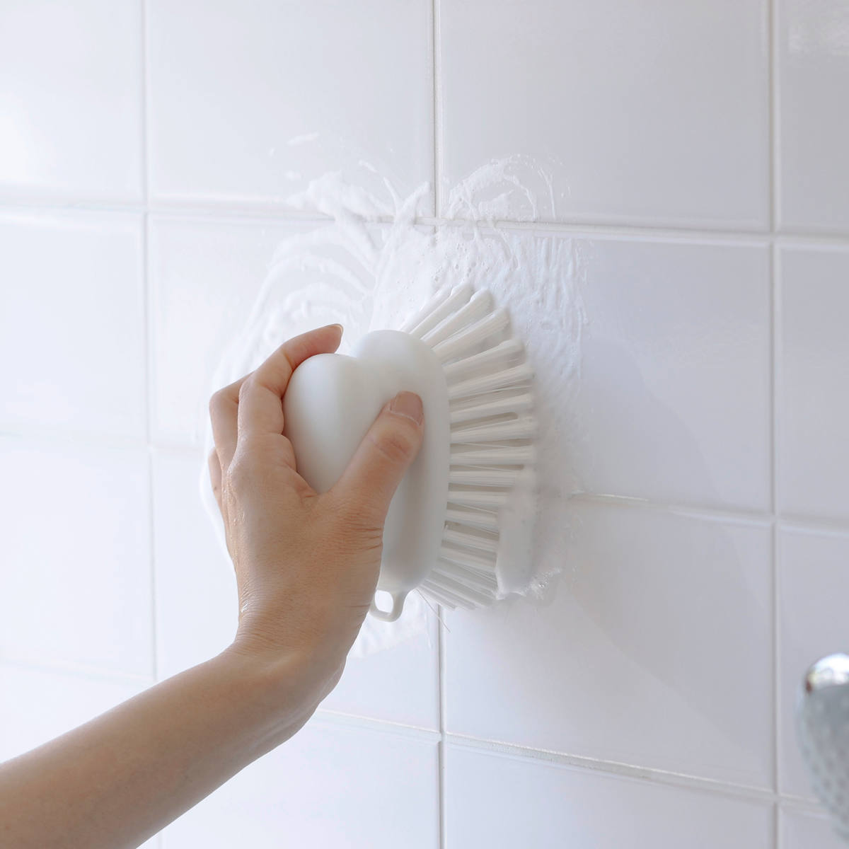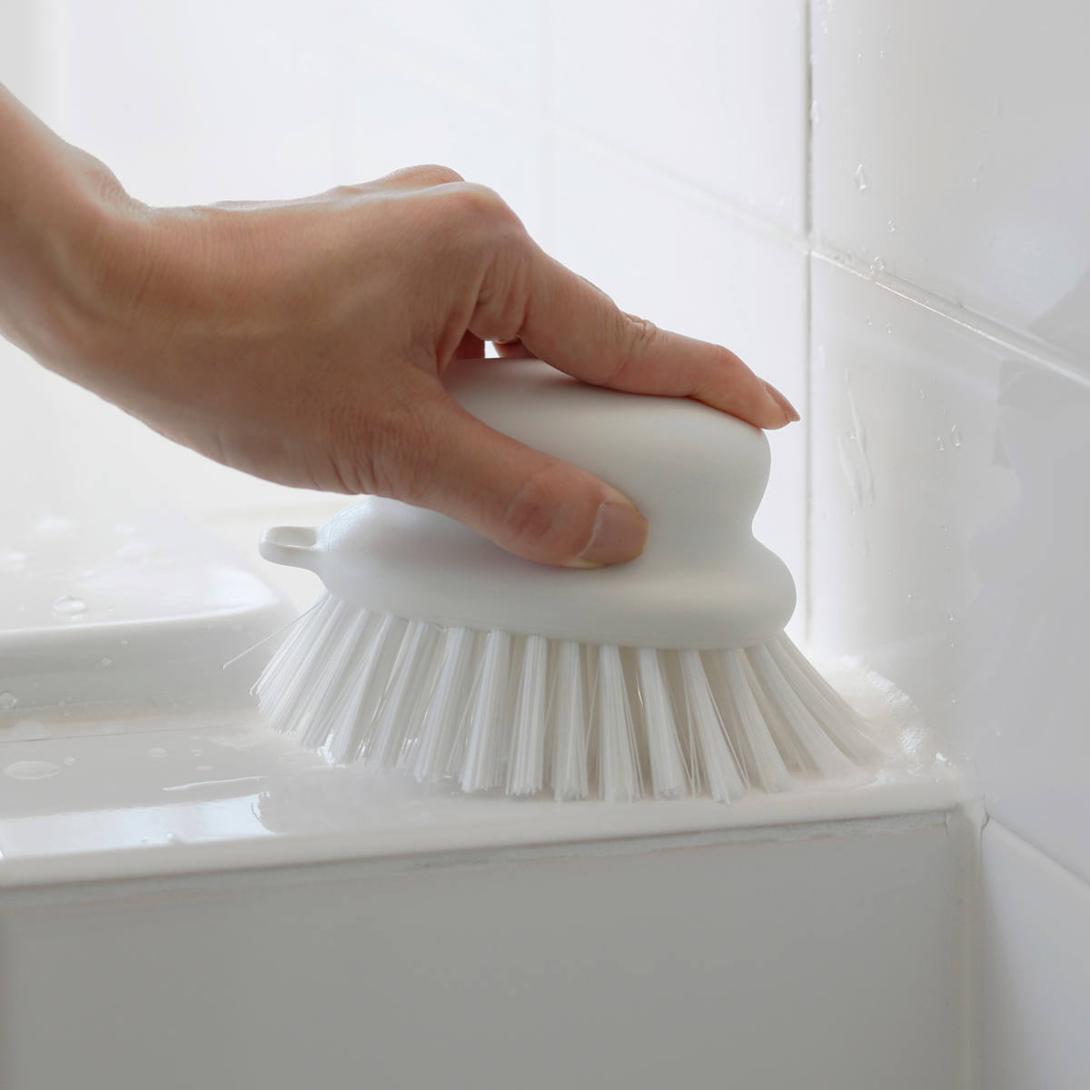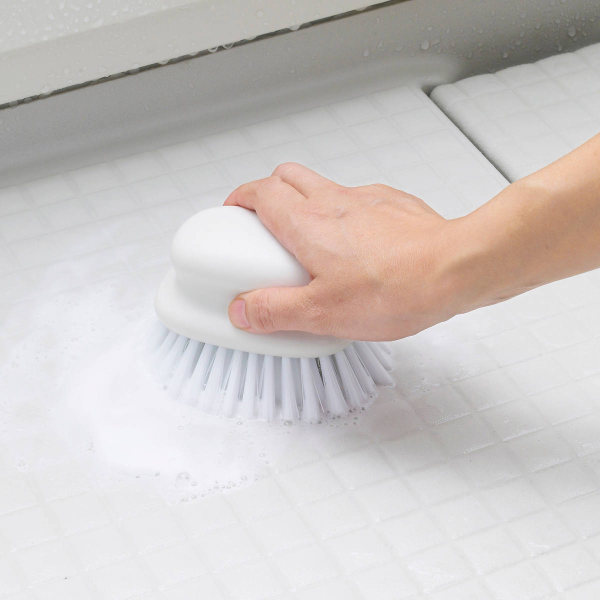 握りやすく、力の入れやすい形のお掃除ブラシです。持つ部分とブラシが近く、洗いたい場所に毛先を当てやすく手が疲れにくいです。