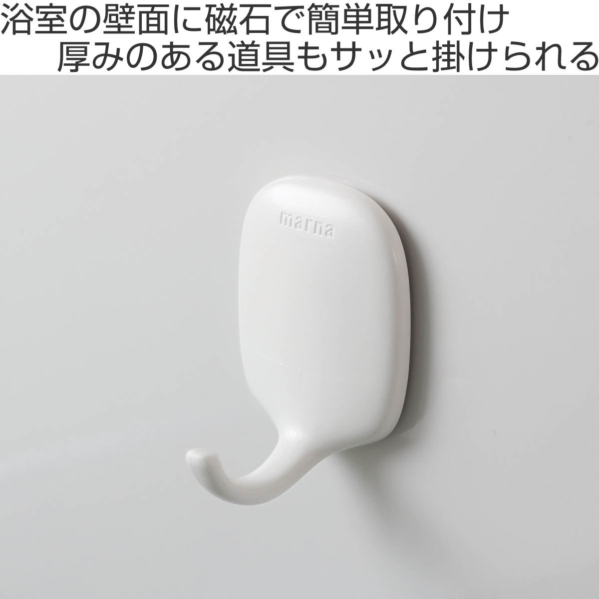 浴室の壁面の使いやすい位置に簡単に付けられるマグネットフックです。サビないラバーマグネットを使用しているので安心して使用できます。