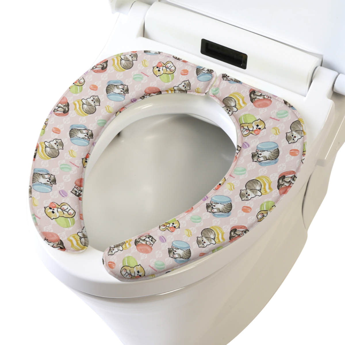 SNSで人気のイラストレーター、じゅのが描く「mofusand」デザインの便座クッションです。愛らしい猫たちのイラストが、トイレ空間をやさしく癒してくれます。