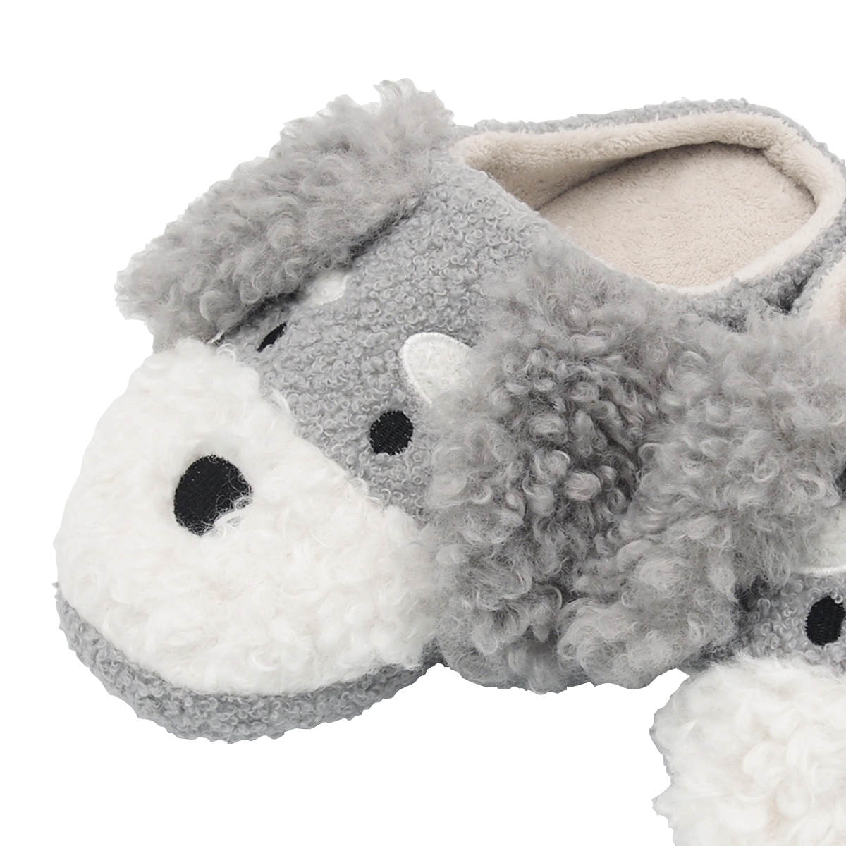 ふわふわもこもこの素材感と、ちょこんとした耳や鼻、つぶらな瞳がたまらないかわいさのイヌスリッパです。まるでワンちゃんと一緒にいるようなほっこりとしたお部屋時間を過ごしていただけます。