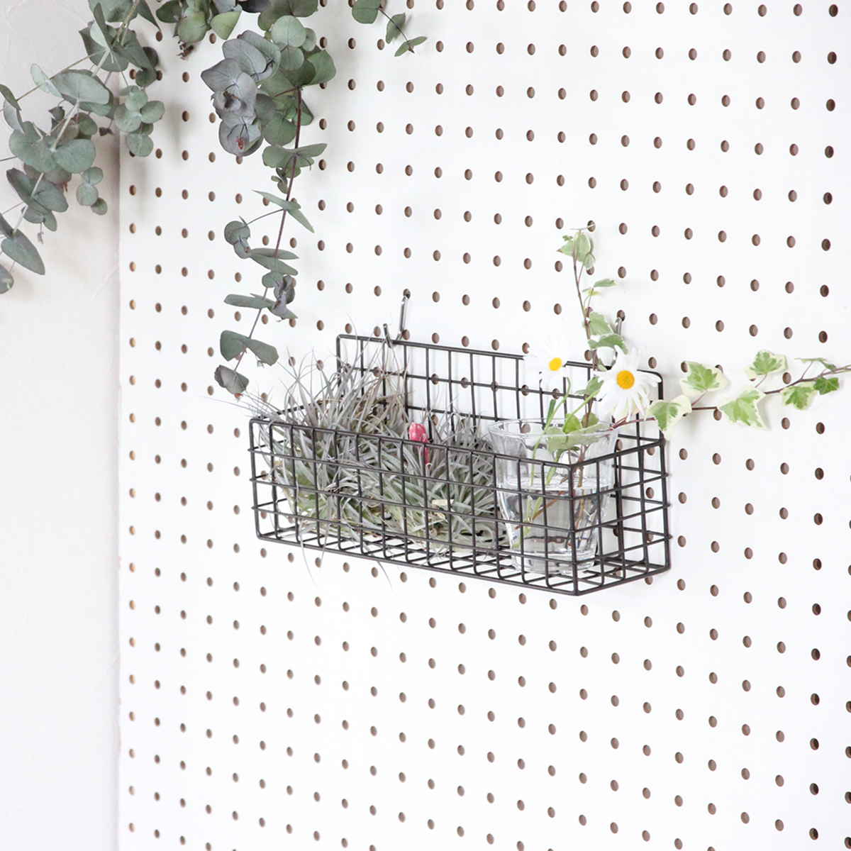 ざっくりと編まれたワイヤー構造で、壁に掛けて収納することも可能です。小物や雑貨を飾る感覚で使えます。