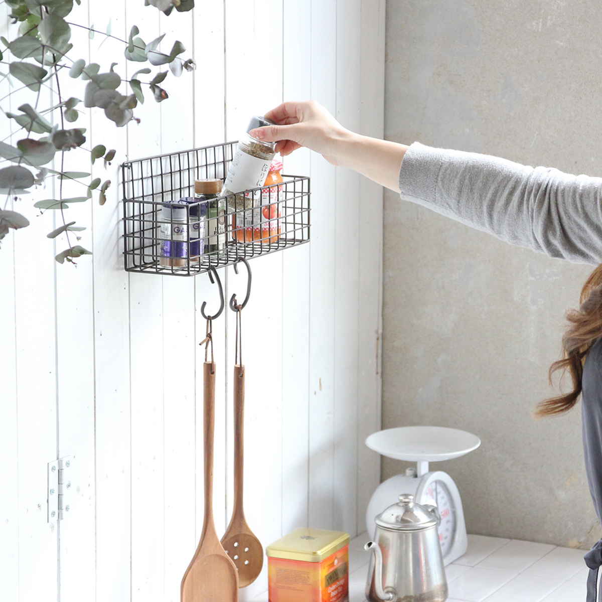 耐久性のあるアイアン素材なので、水回りや日常の整理収納にも安心して使えます。スパイス、タオル、雑貨など、用途に合わせて自由に活用できます。