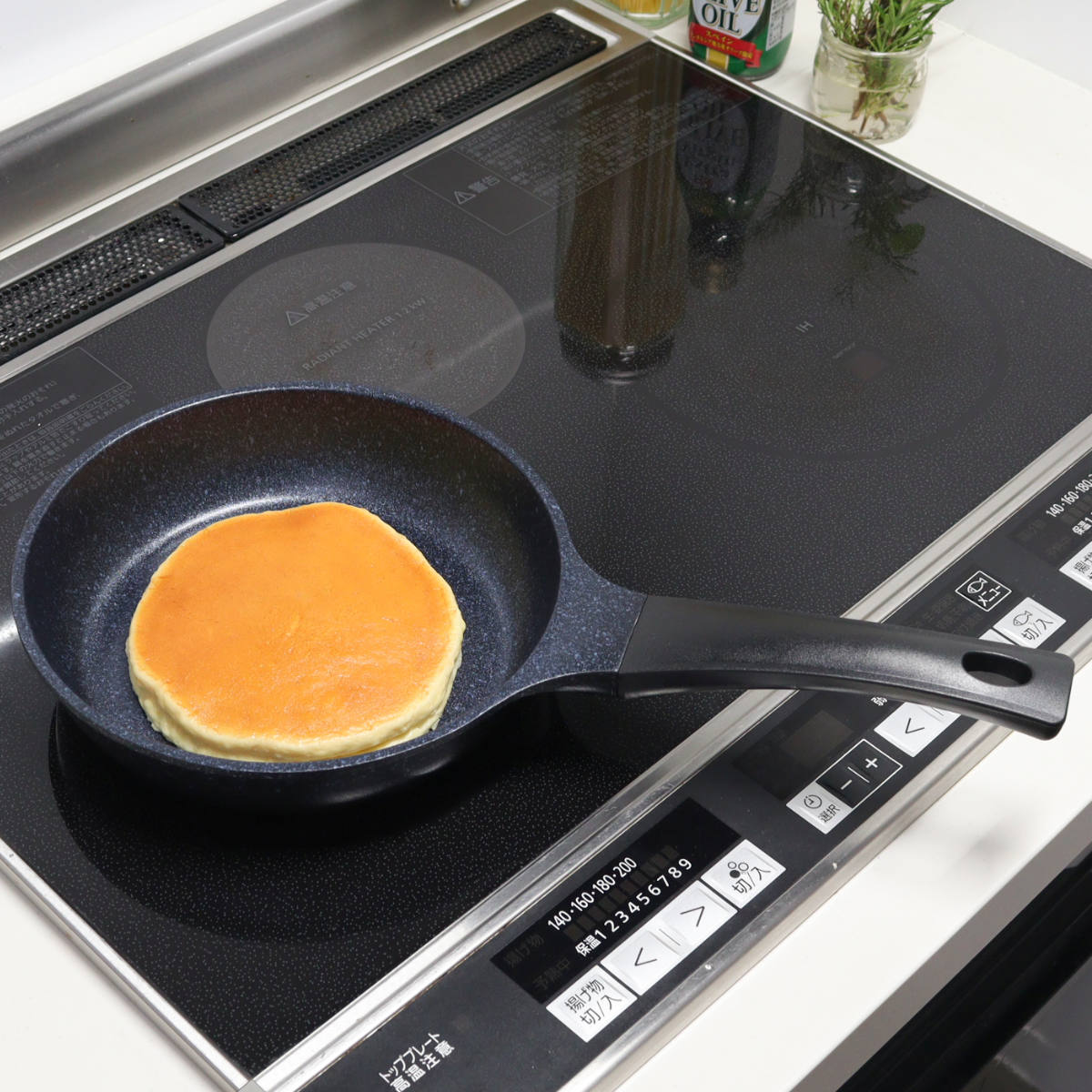 IHクッキングヒーター、ガスコンロを含むオール熱源対応です。20cmはコンパクトで扱いやすく、ちょっとした一品やおつまみ、お弁当おかず作りに最適です。また、パンケーキやフレンチトーストといった軽食作りにもおすすめです。