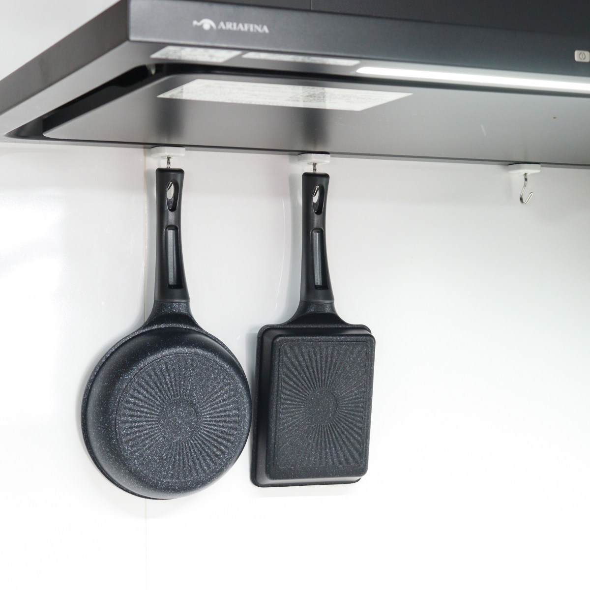 ハンドル先端にははフック穴があり、吊るして収納しておくことも。片手でさっと手に取ってスムーズに調理に取りかかれます。