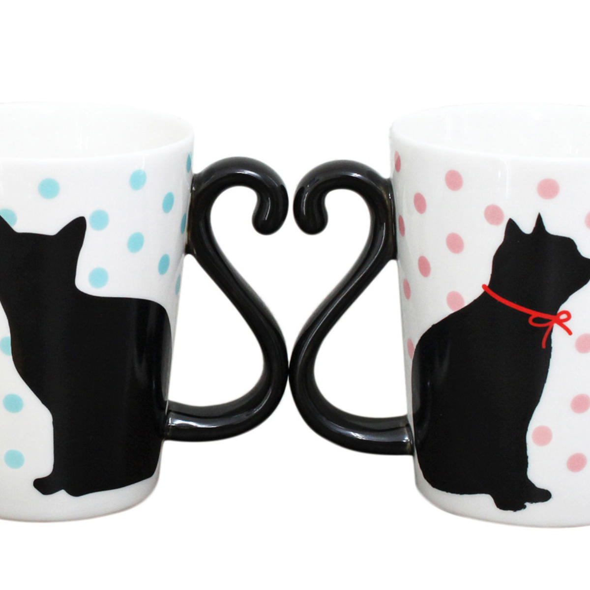 取っ手になっている猫の尻尾を合わせると、ハートの形が完成します。ご夫婦やカップル、友人など、ペアでお使いいただけます。