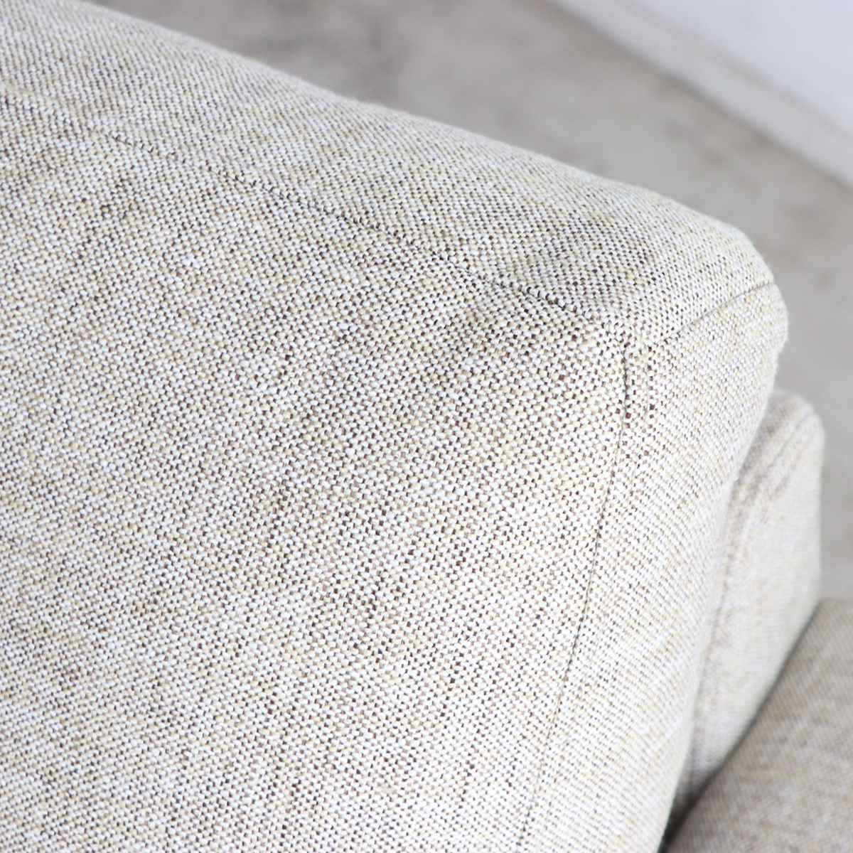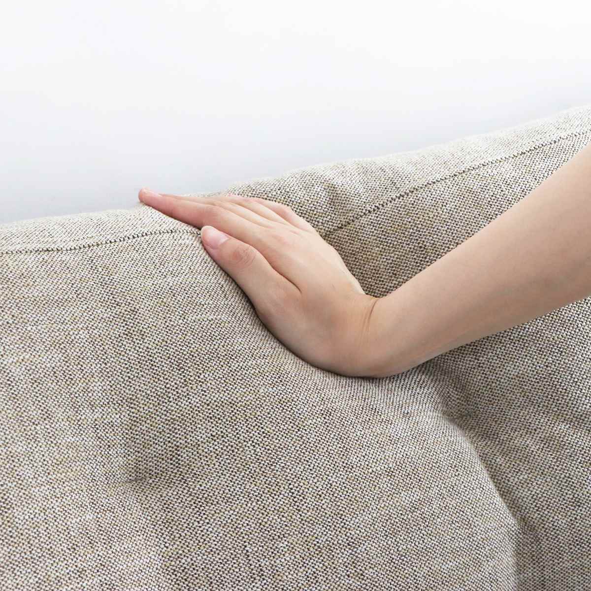 落ち着いた印象のベージュカラーのファブリックは、やわらかな風合いと心地よい肌触りが魅力です。さらっとした手触りでオールシーズン快適にお使いいただけます。