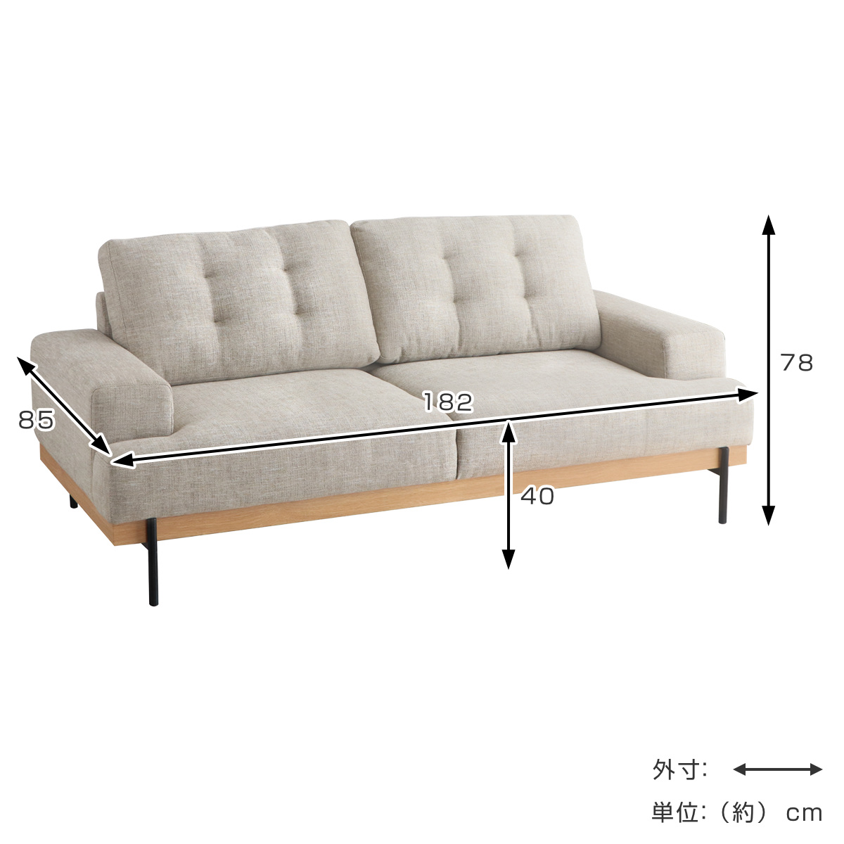 | サイズ | 約 幅182×奥行85×高さ78(cm) 座面高:約 40(cm) |