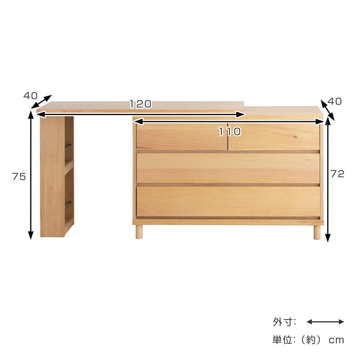 | サイズ | 【デスク】約 幅120×奥行40×高さ75(cm) 【チェスト】約 幅110×奥行40×高さ72(cm) |