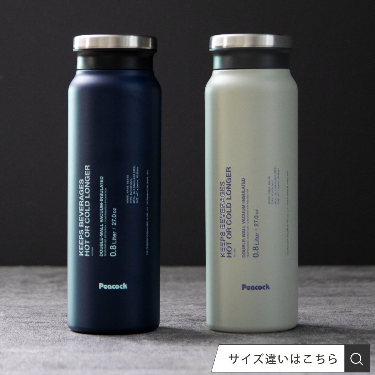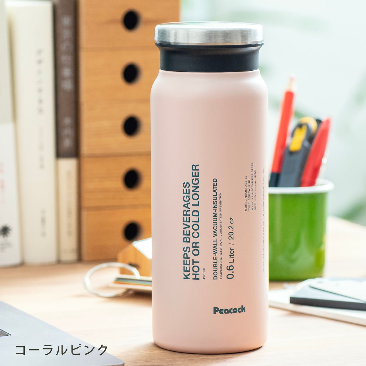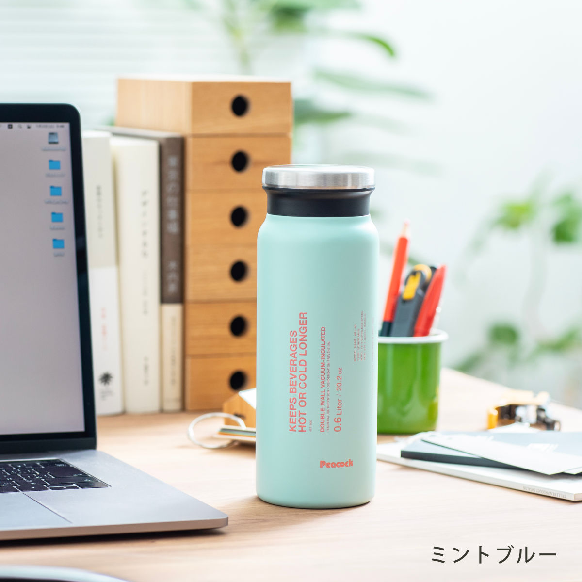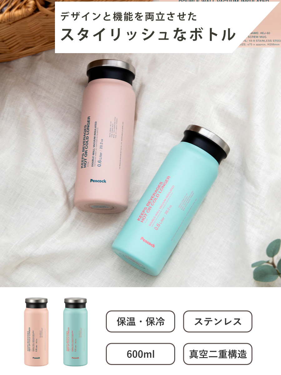 | 材質 | 内びん・びん口部:ステンレス鋼 胴部:ステンレス鋼(アクリル樹脂塗装) せん・飲み口:ポリプロピレン パッキン:シリコーンゴム |