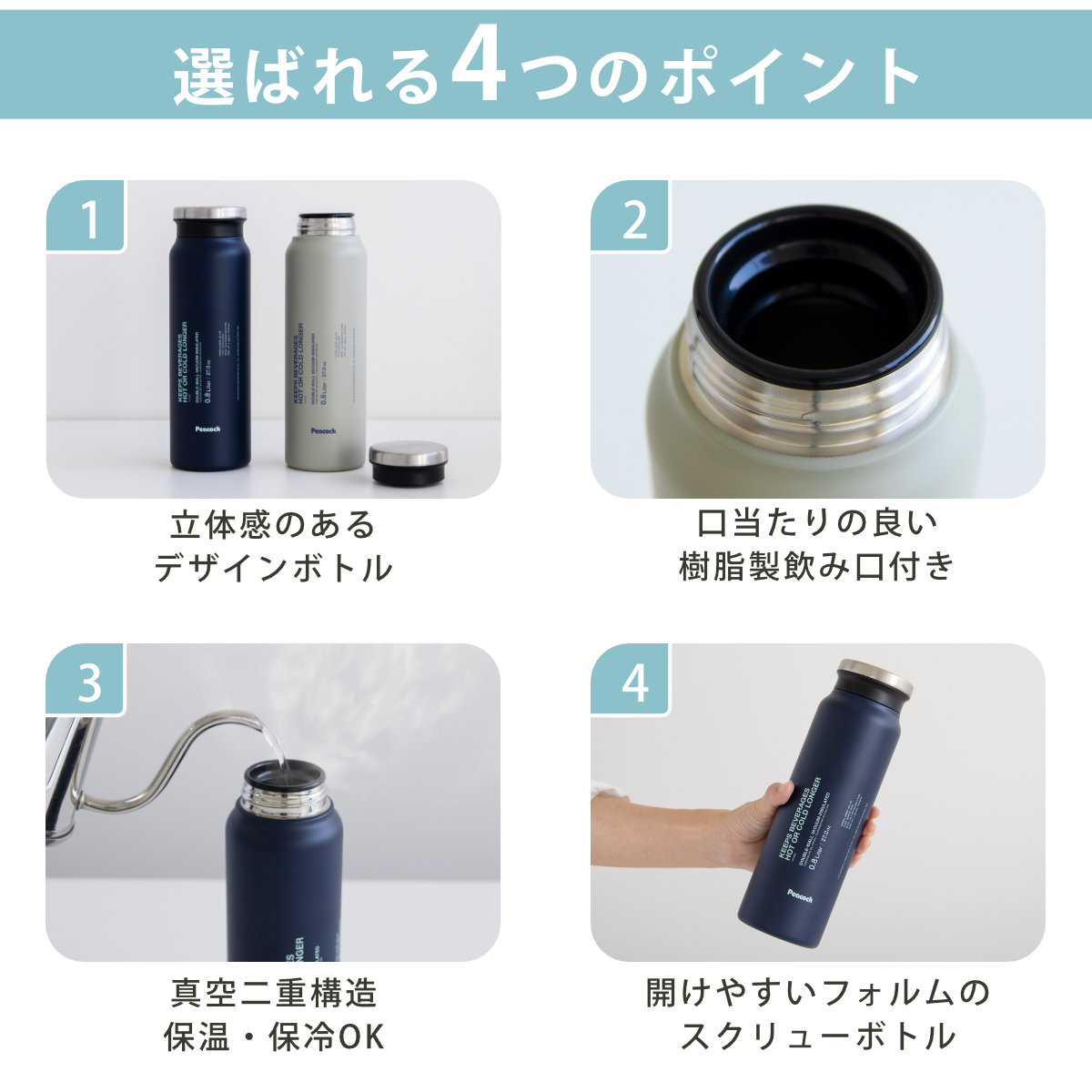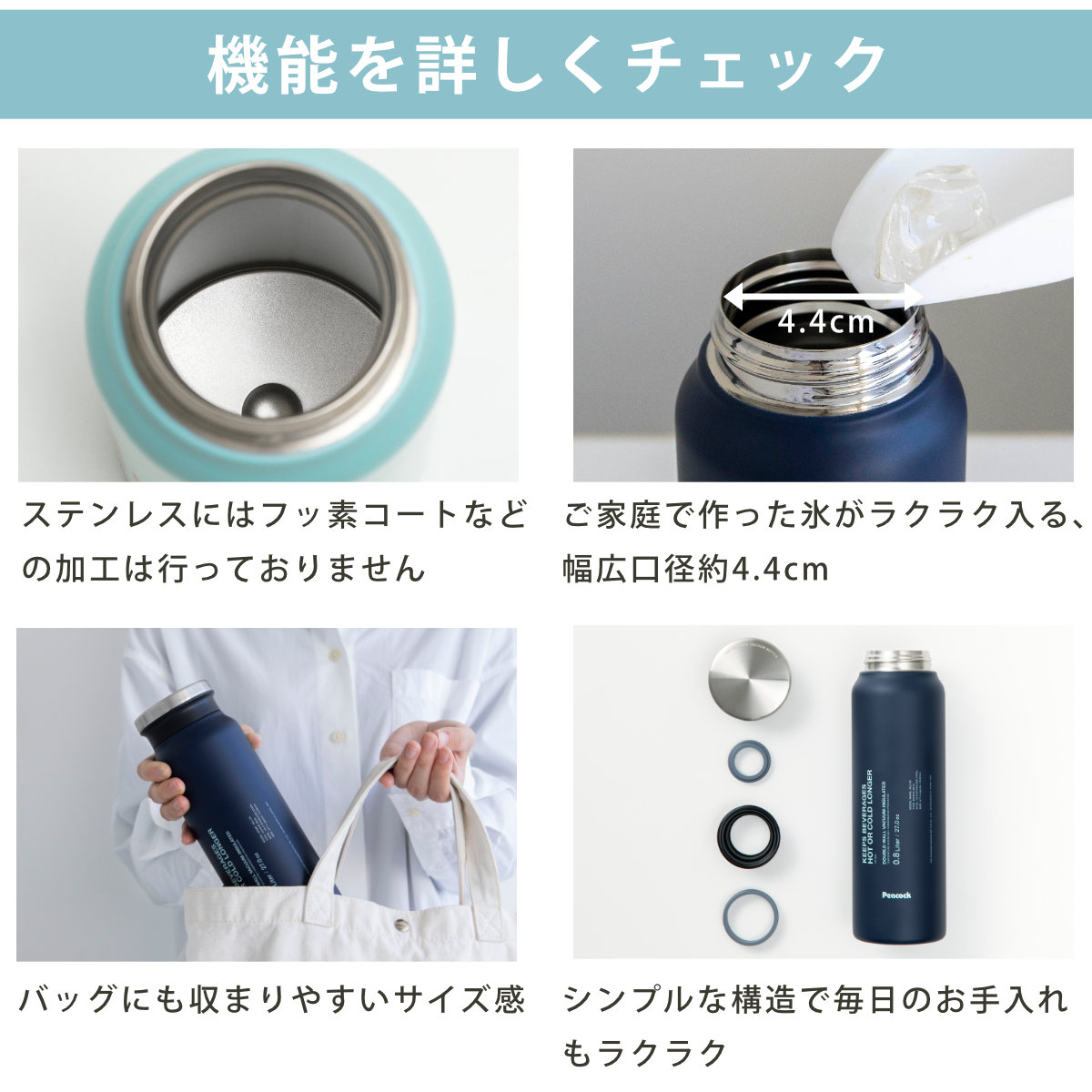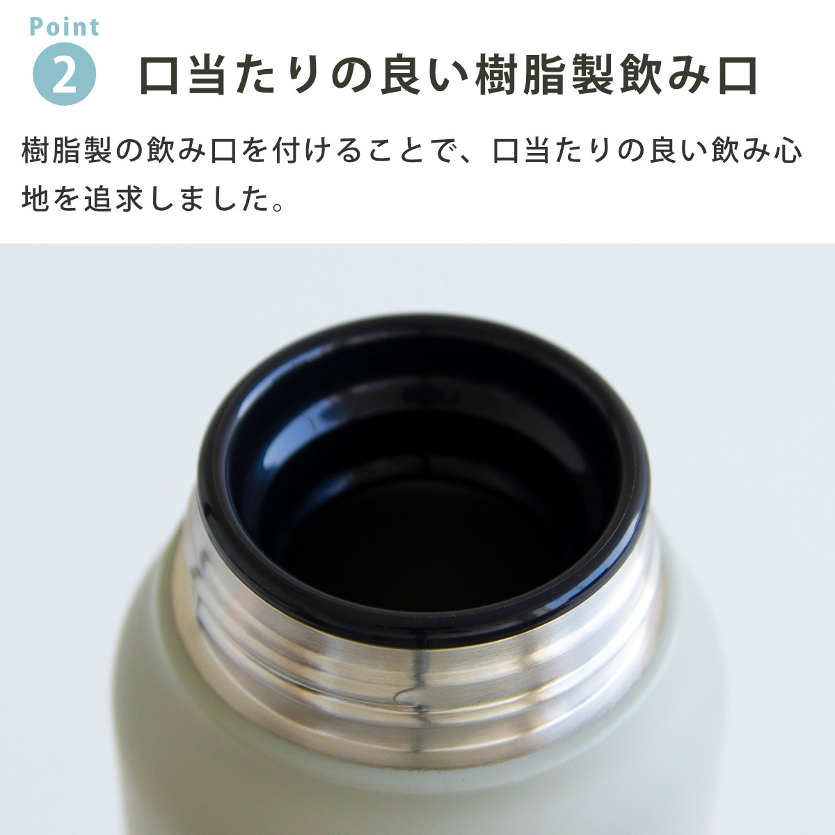 | 材質 | 内びん・びん口部:ステンレス鋼 胴部:ステンレス鋼(アクリル樹脂塗装) せん・飲み口:ポリプロピレン パッキン:シリコーンゴム |