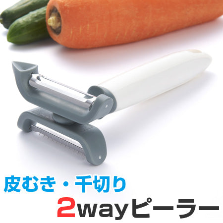 2つのヘッドで、皮むきも千切りもできるピーラーです。