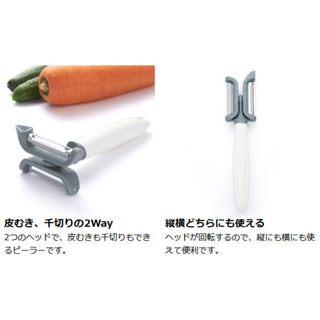 皮むき、千切りの2つのヘッドを使い分け♪縦横使えるピーラー