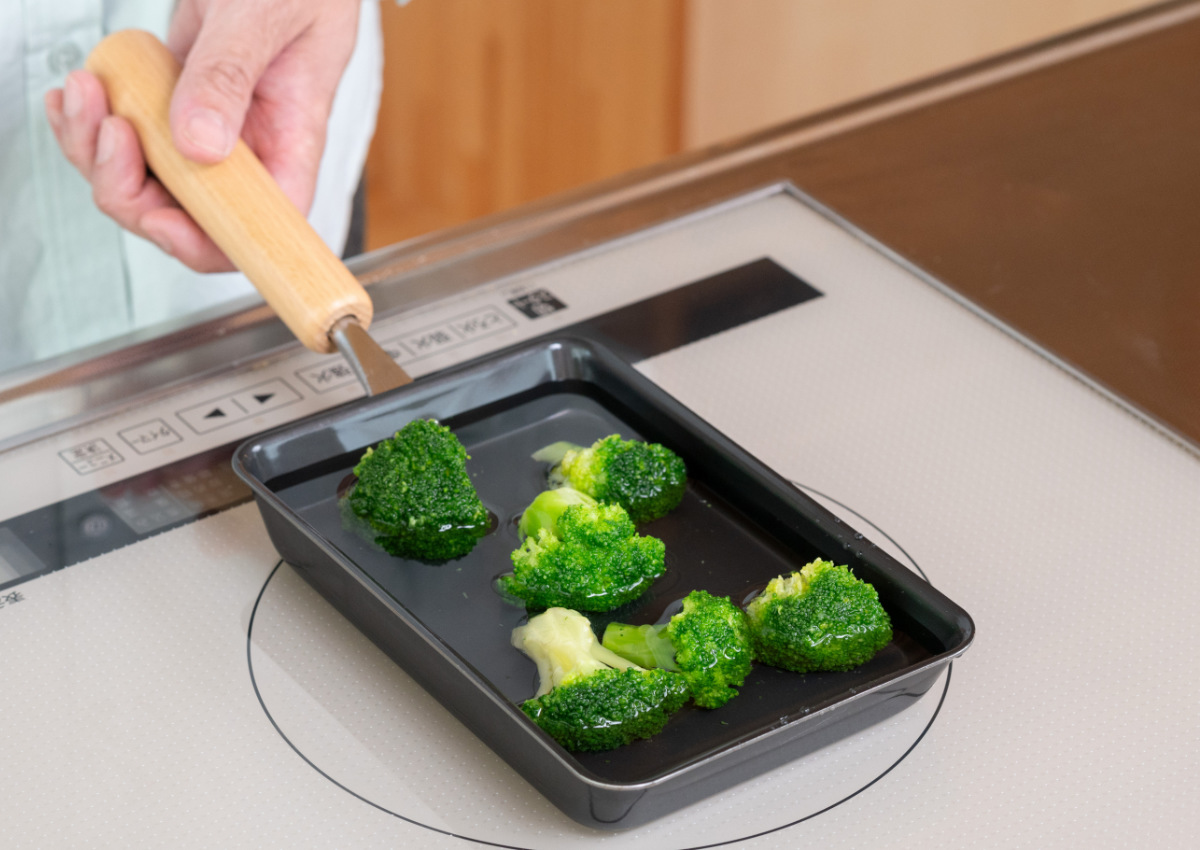 鉄製なので焼いたり炒めたりするだけでなく、茹で調理も可能です。鍋で茹でるよりもお湯が少なくて済むので、少量の野菜を茹でたい時もすばやく湯を沸かせて手早く調理できます。