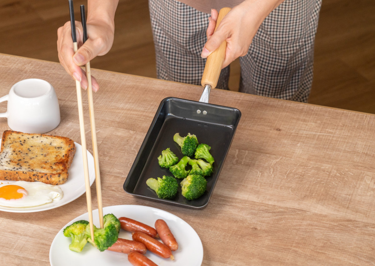 卵焼きからおかず作りまで、卵焼き器ひとつで朝食を作れます。お鍋やフライパンを別で用意する必要もないので洗い物も少なく、朝の忙しい時間にぴったりです。