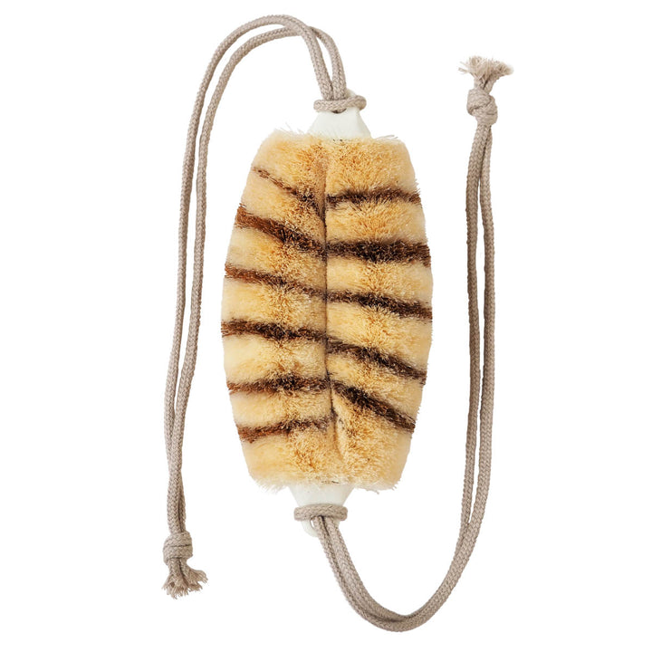 サイザル麻とココナッツ繊維の柔らかい部分を組み合わせた、ほどよい刺激と心地よい使用感が特徴的なボディケアたわしです。使うたびにリフレッシュできるような爽快な使い心地をお楽しみいただけます。ナチュラルな縞模様がどこか愛らしく、見た目にも癒されます。