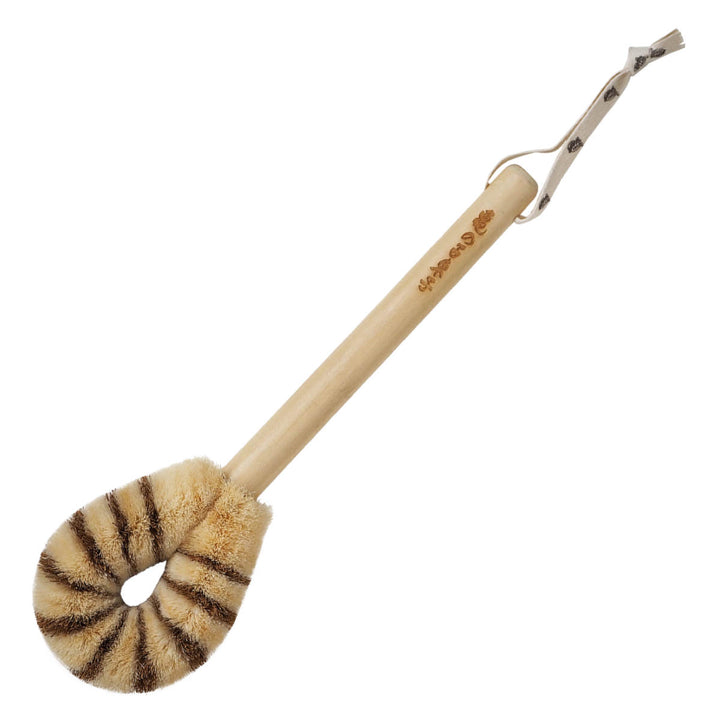 サイザル麻とココナッツ繊維の柔らかい部分を組み合わせた、ほどよい刺激と心地よい使用感が特徴的なボディケアたわしです。使うたびにリフレッシュできるような爽快な使い心地をお楽しみいただけます。ナチュラルな縞模様がどこか愛らしく、見た目にも癒されます。