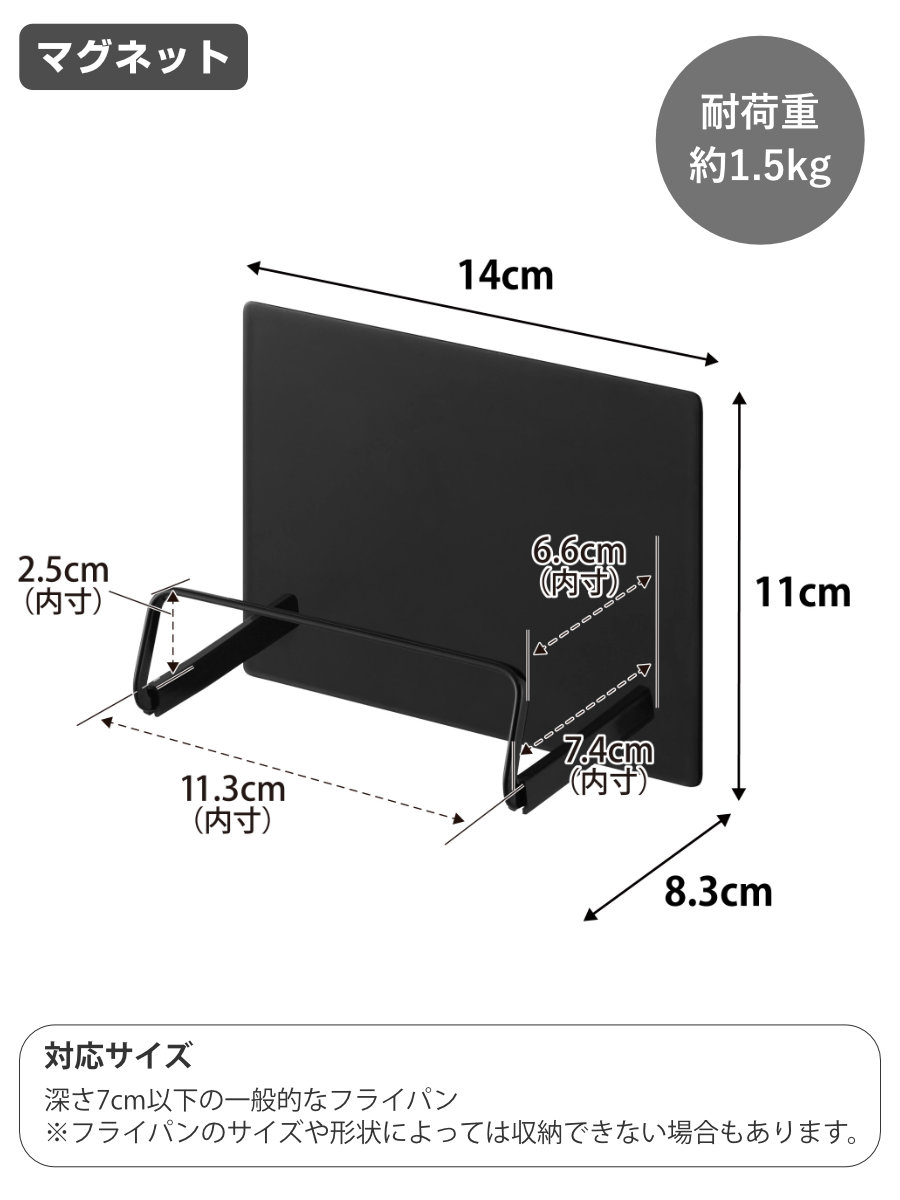 | 対応サイズ | 深さ7cm以下の一般的なフライパン ※フライパンのサイズや形状によっては収納できない場合もあります。 |