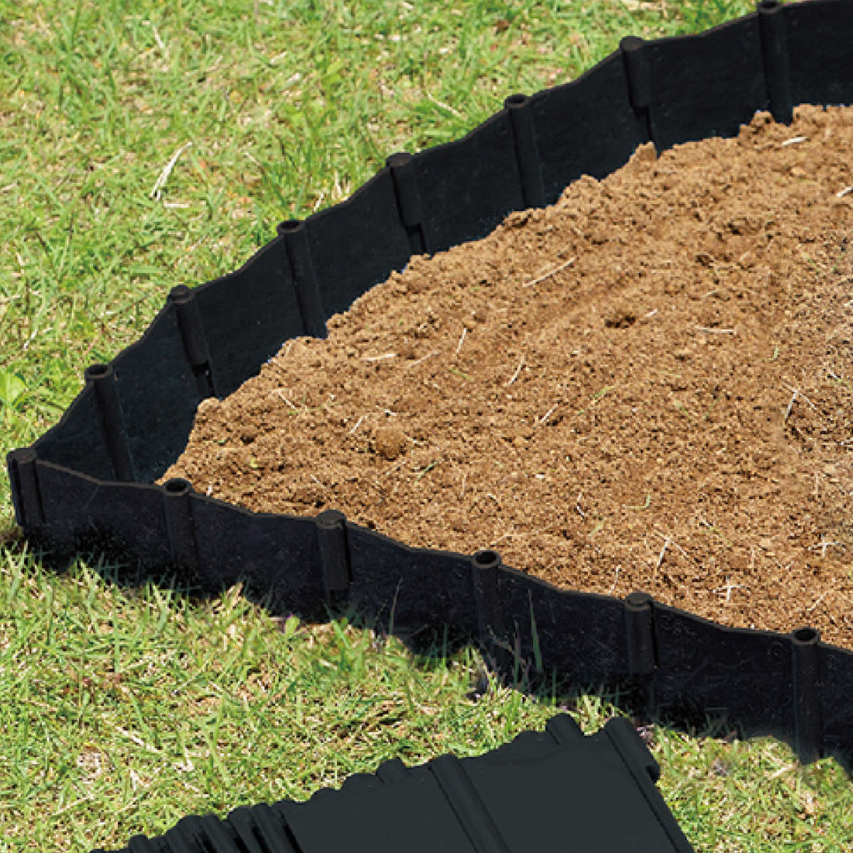●柔軟な樹脂素材で、直線もカーブも思いのまま。お庭のレイアウトに合わせて簡単に設置できます。