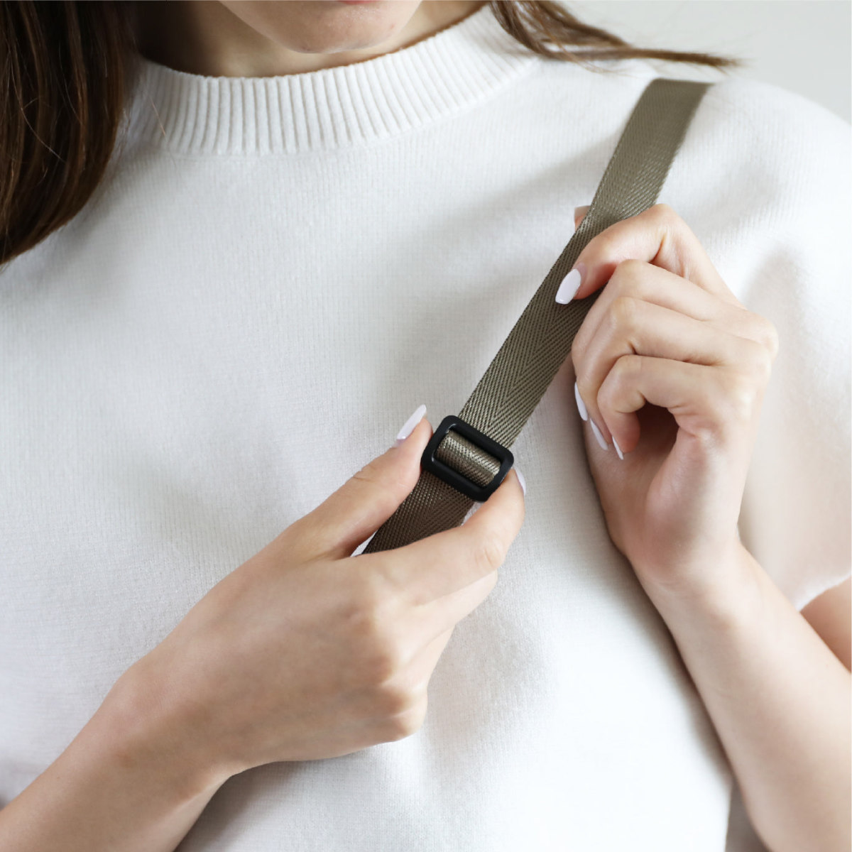 ストラップの長さは70~130cmまで自由に調整でき、肩掛けも斜め掛けにも対応しています。使う人の体格やスタイルに合わせてアレンジできるので、小さなお子さまから大人の方まで幅広く活躍します。